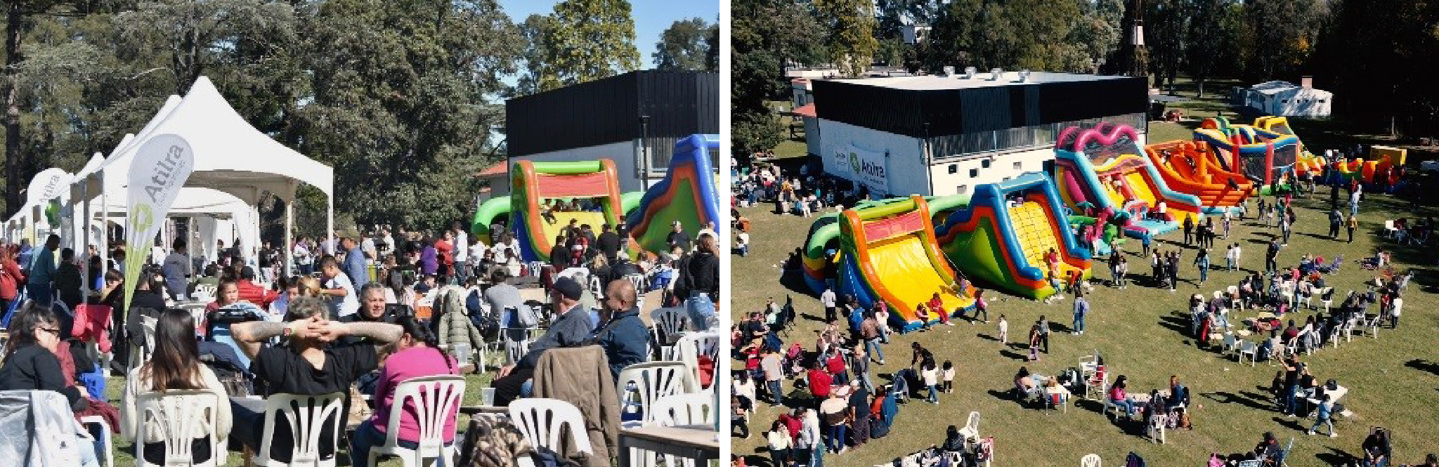 Desde muy temprano los parrilleros se encargaron de cocinar los cientos de choripanes, hamburguesas y bondiolas de cerdo que luego fueron ubicados en distintas islas, para que los presentes pudieran elegir lo que querían comer. Además, había opciones de menú apto para personas vegetarianas y celíacas para que nadie se quedara afuera. Además, había barra libre donde se ofrecían bebidas frescas. A medida que el predio se llenaba, los más chicos se iban adueñando de los peloteros y de las distintas canchas que les permitieron jugar y divertirse.