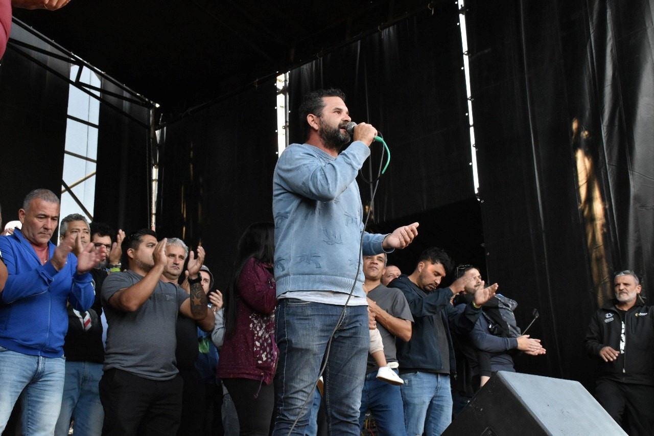 Heber Ríos, Secretario General Atilra Seccional General Rodríguez, y Mario Chávez, Secretario Adjunto, junto a los cuerpos de delegados e integrantes de la comisión directiva del gremio, fueron los encargados de recibir a sus compañeros y compañeras, y pasado el mediodía los encargados de los discursos de la jornada.