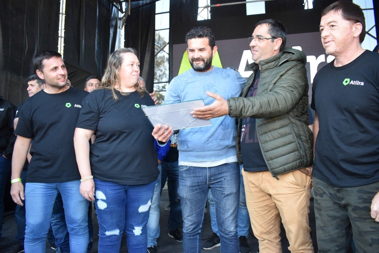 Por último, los trabajadores de Arenaza de la seccional Junín, los 21 de Mendicrim”, hicieron entrega de una placa en reconocimiento a Heber Ríos y la Seccional General Rodríguez, por el apoyo brindado durante el conflicto que emergió cuando se pusieron en peligro sus puestos de trabajo.
