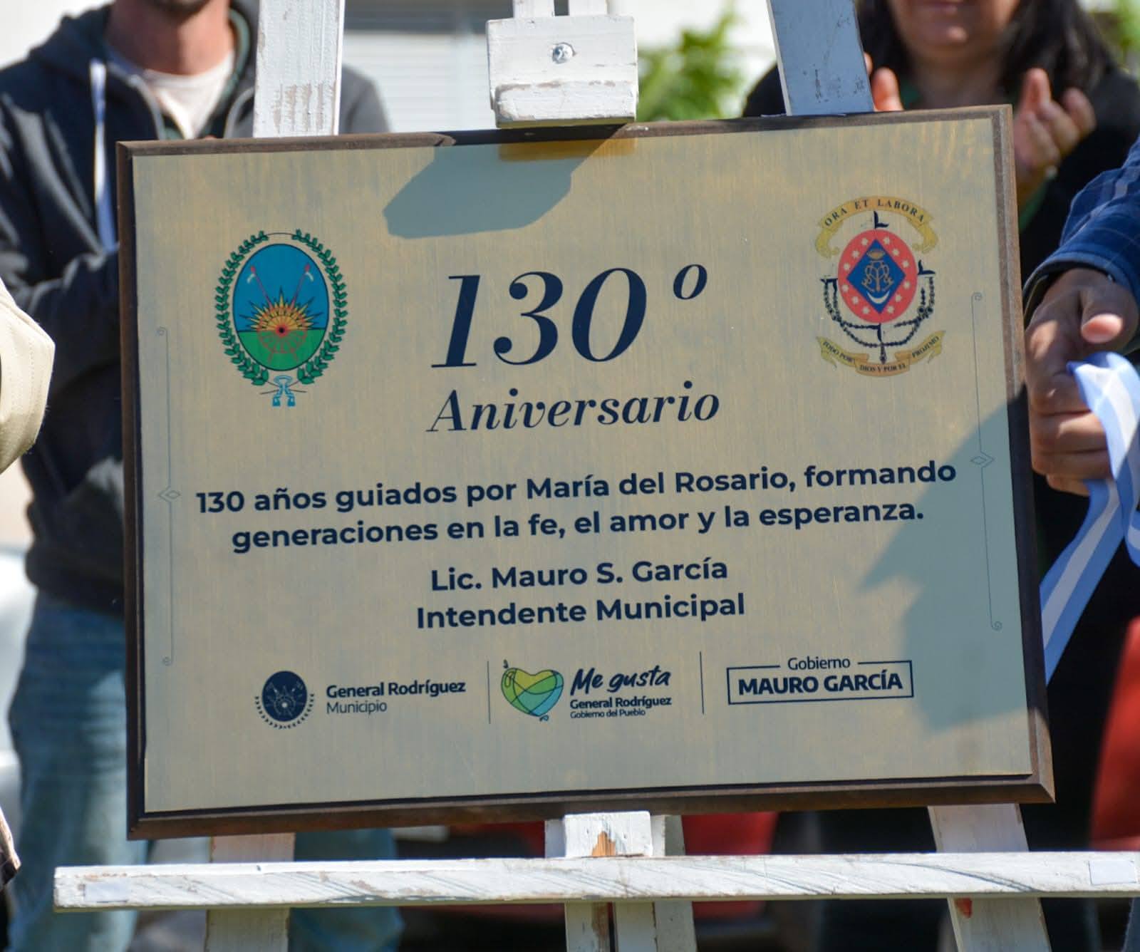 Tras recorrer las calles del casco céntrico de nuestra ciudad con imágenes alusivas a la Virgen, la procesión culminó con el descubrimiento de una placa conmemorativa junto a autoridades de las instituciones educativas. La plaqueta fue bendecida por el padre Javier Spreafichi, de la parroquia «Nuestra Señora del Carmen», y honra los «130 años con María del Rosario, formando generaciones en la fe, el amor y la esperanza”.