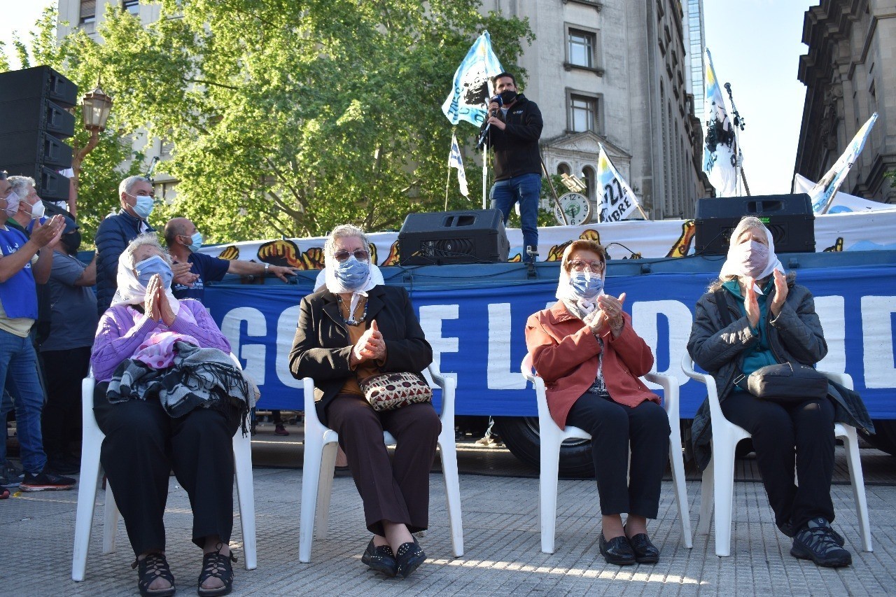 Vinimos hoy acá para decirle al gobierno que tome las medidas que haya que tomar para terminar de una vez con el sufrimiento que causaron las dos pandemias, que acá hay un pueblo trabajador para respaldarlo, que acá hay un pueblo trabajador que no olvida a quien no lo traiciona. Lealtad con lealtad se paga.