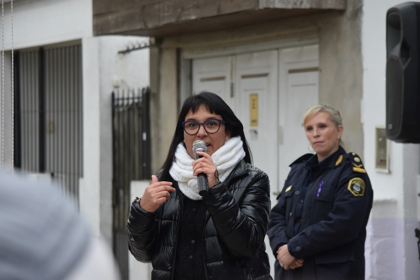Luego de las palabras iniciales de quien encabeza la Comisaria de la Mujer y la Familia, la Oficial Principal Adriana Luna, tomo la palabra la secretaria de la Mujer, Niñez, Adultos Mayores y Derechos Humanos Mariana Galván, quien aseguro que no vinieron “a cortar cintas y a develar una placa, venimos a profundizar estas políticas con perspectivas de género y siempre con Micaela como bandera”, en alusión a la joven víctima de Violencia de Género, con cuyo nombre se conoce la Ley que dispone que en todas las áreas del estado deben realizarse capacitaciones de Género.