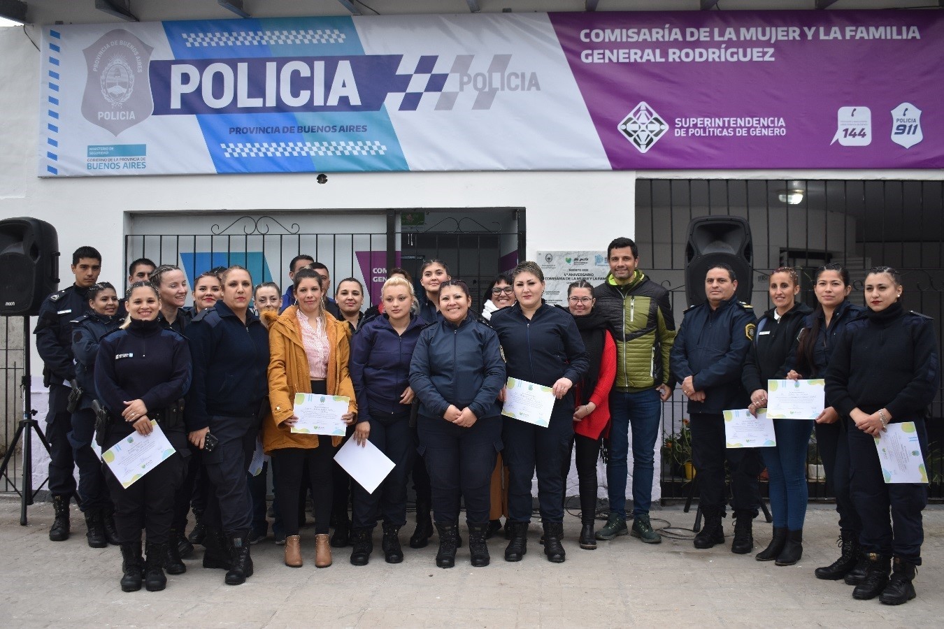 Del acto participaron además la directora de Géneros y Diversidad Sexual, Fanny Escudero, el jefe de Gabinete Luciano Larralde, la concejala Ana Mottino, el Súper Intendente de Seguridad del AMBA Oeste II, Comisario General Carlos Giménez, el Jefe de Estación de General Rodríguez Omar Méndez, la Coordinadora de Genero Comisaria Inspectora Marcela López, el Jefe del Comando de Patrullas de General Rodríguez Mariano Reinoso, el Comisario titular de la Comisaria Primera Ricardo Núñez, y el de la Segunda, Subcomisario Gabriel Brandan.