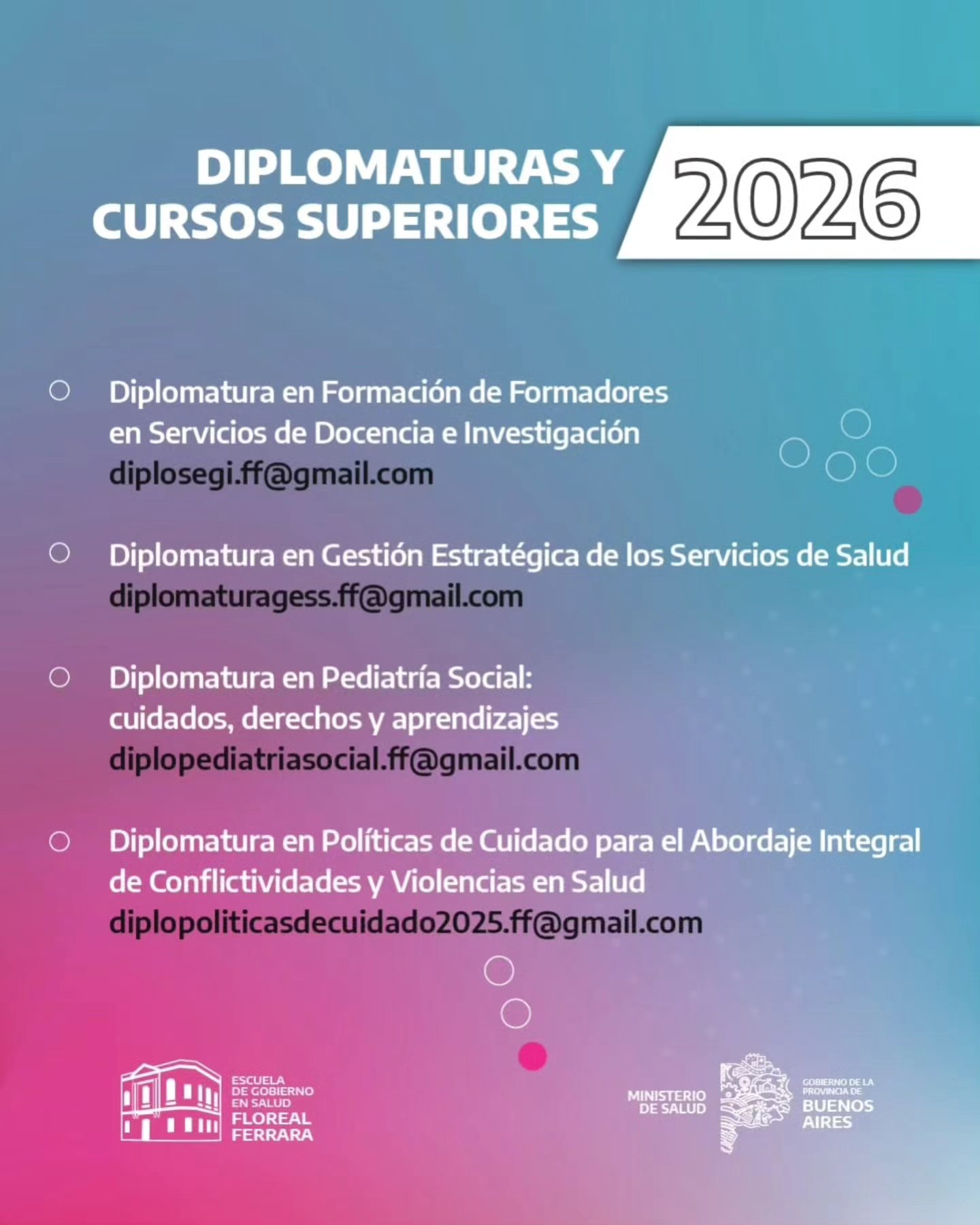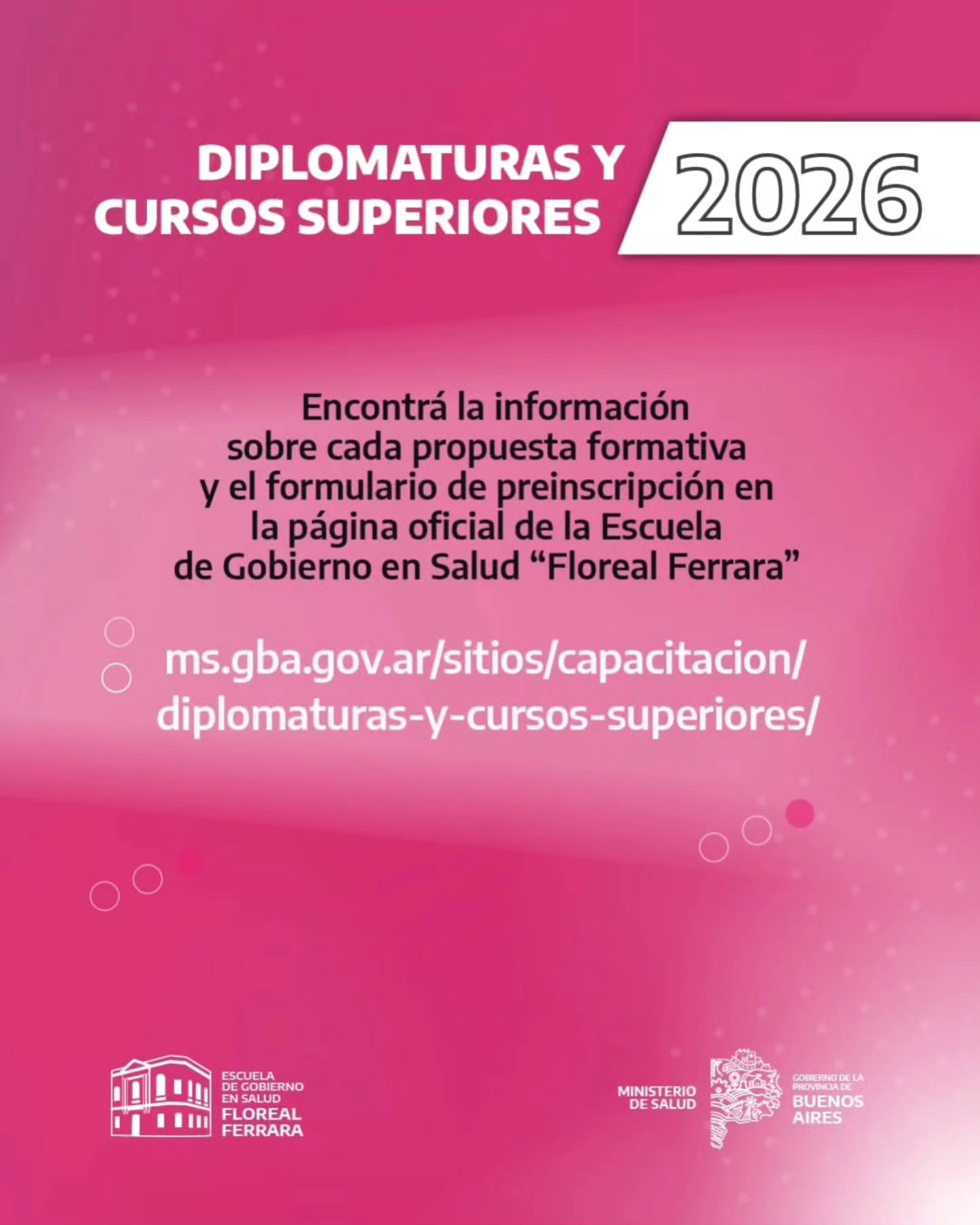 Las personas interesadas podrán preinscribirse hasta el 28 de febrero completando el formulario disponible en el enlace del perfil institucional o ingresando a: https://www.ms.gba.gov.ar/sitios/capacitacion/diplomaturas-y-cursos-superiores/