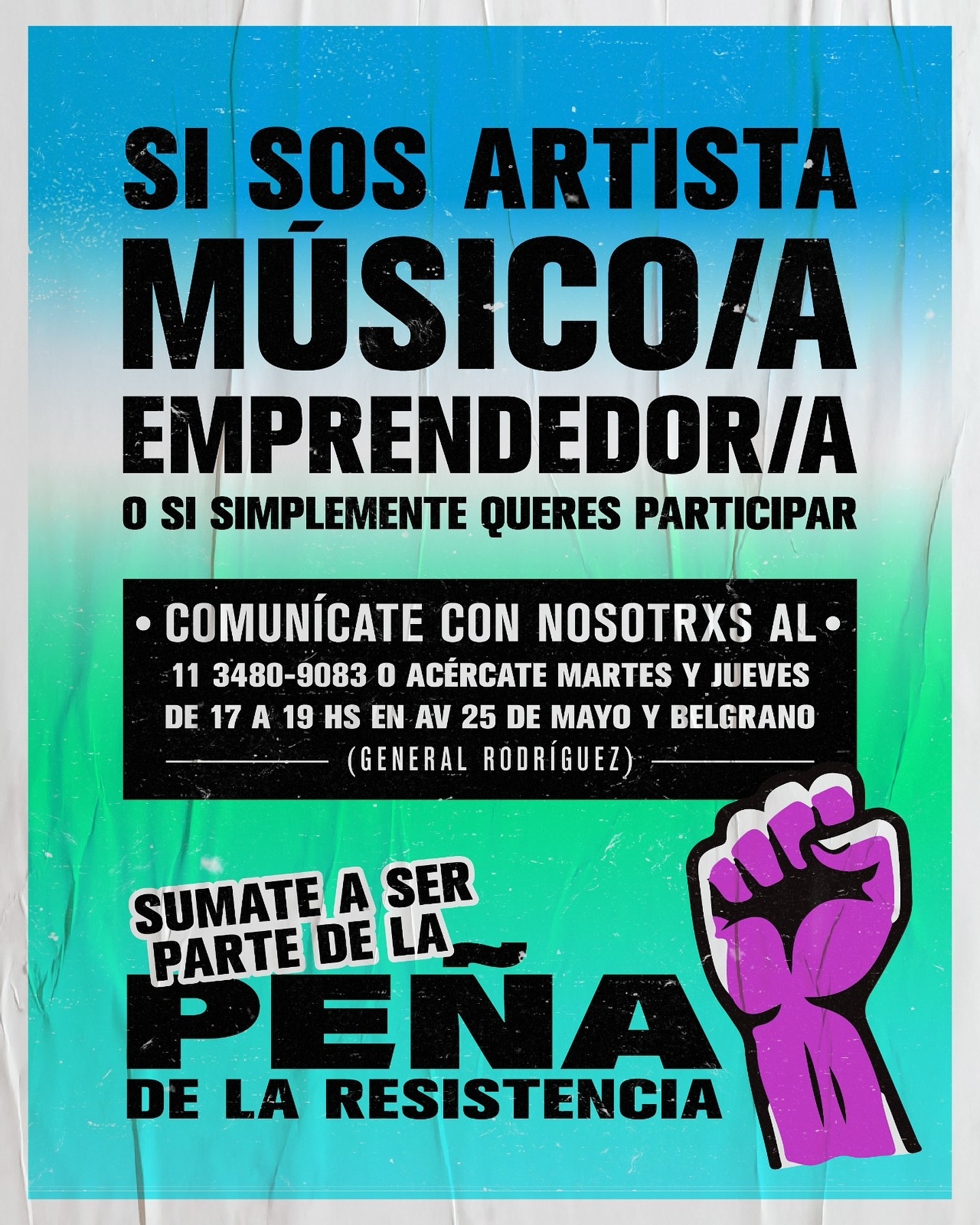 La Peña de la Resistencia, espacio que surge de la necesidad de contar con un lugar de militancia, encuentro y resistencia entre compañeros y compañeras a través de la cultura y el arte, se realiza una vez por mes bajo diferentes consignas que son atravesadas por la música.