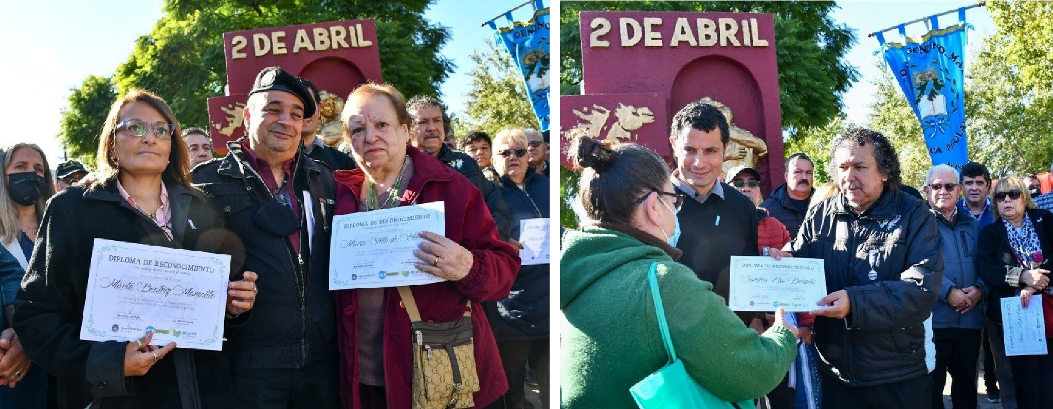 Durante la ceremonia, se procedió al descubrimiento de la placa conmemorativa llevado a cabo por el intendente y el presidente del Centro de Veteranos de Guerra de General Rodríguez, Wildo Ferreira. Además, la Municipalidad junto con el Honorable Consejo Deliberante, hicieron entrega de certificados que homenajean a las mujeres que cumplieron un rol en la gesta de Malvinas, ya sean madres, novias, esposas, hermanas e hijas. Mujeres que deben ser escuchadas, reconocidas y homenajeadas de igual manera, como también aquellas que fueron enfermeras voluntarias de la guerra. Recuperar la labor de ellas debe ser visto como un acto de equidad y memoria, indicaron.
