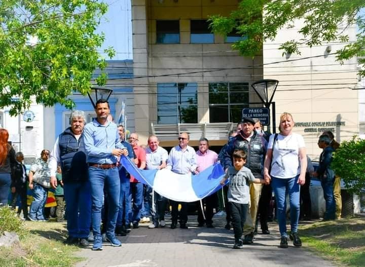 Allí estuvieron presentes el intendente municipal Mauro García, autoridades municipales, banderas de ceremonia de instituciones educativas y los Veteranos de Guerra de Malvinas de nuestra localidad acompañados por sus familiares.