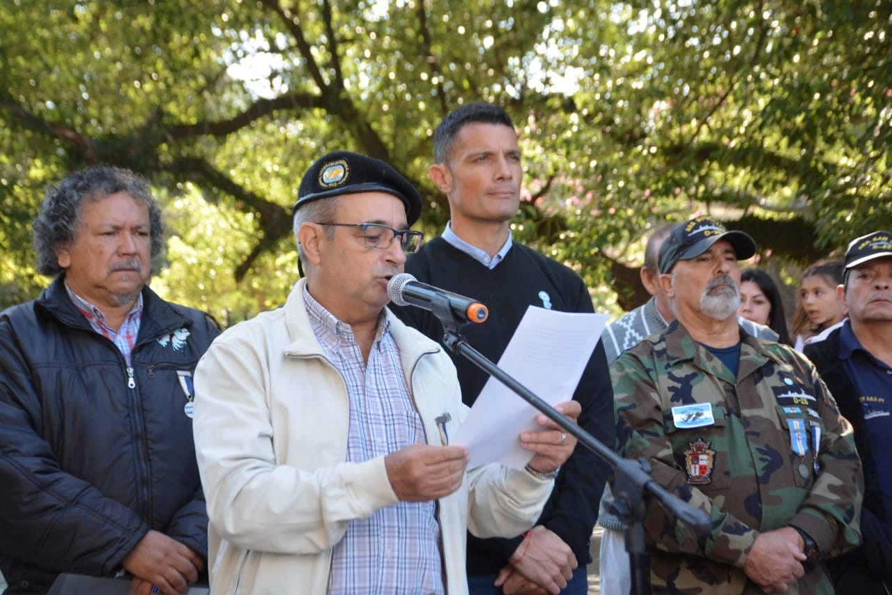 Previo al acto conmemorativo, el intendente municipal recibió a autoridades en el palacio municipal para luego dar comienzo a dicho acto. Allí se entonaron las estrofas de la Marcha de Malvinas y el Himno Nacional Argentino. Seguidamente, Horacio Herrero brindó unas palabras alusivas en representación del Centro de Veteranos de Guerra “Islas Malvinas”.