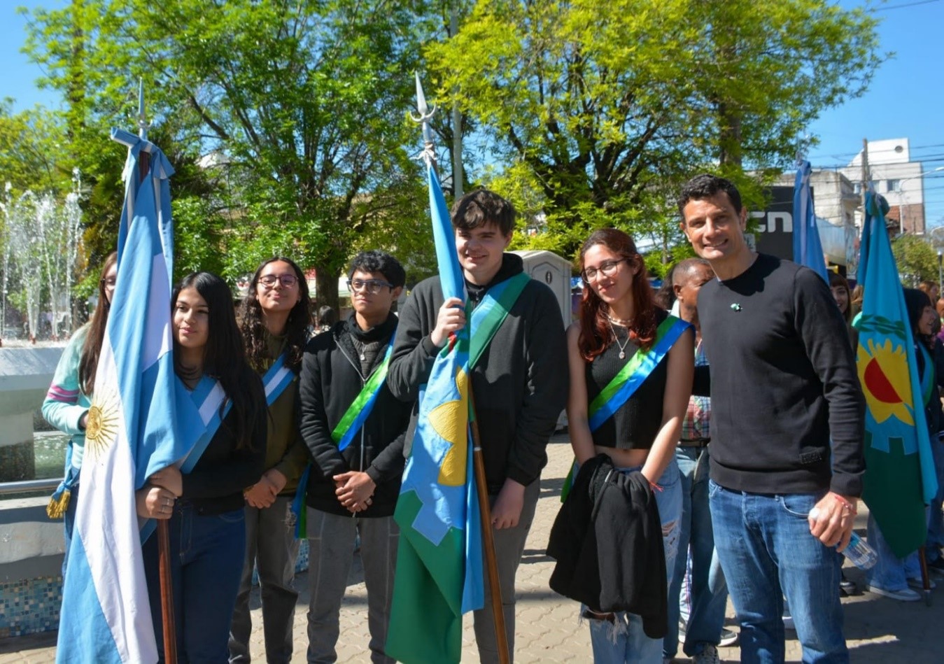 En primera instancia, el jefe comunal introdujo a las banderas de ceremonia junto a integrantes del HCD y el Grupo de Guías N° 9 de nuestra ciudad. Cabe destacar que la Orquesta Sinfónica Municipal estuvo a cargo de la ejecución del Himno Nacional, “Aurora” y parte de su repertorio popular para acompañar el desarrollo del acto.