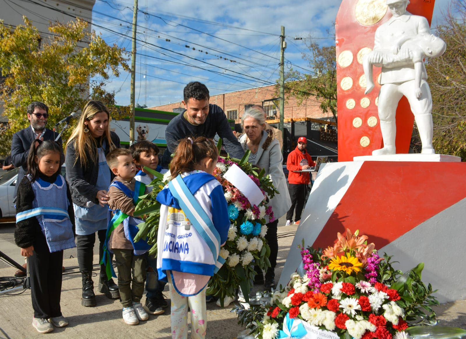 Luego tomo la palabra el intendente Mauro García quien agradeció el trabajo cotidiano que realiza el cuartel en servicio a nuestra comunidad. Luego el jefe comunal y autoridades del Concejo Deliberante brindaron ofrendas florales tradicionales en el monolito.
