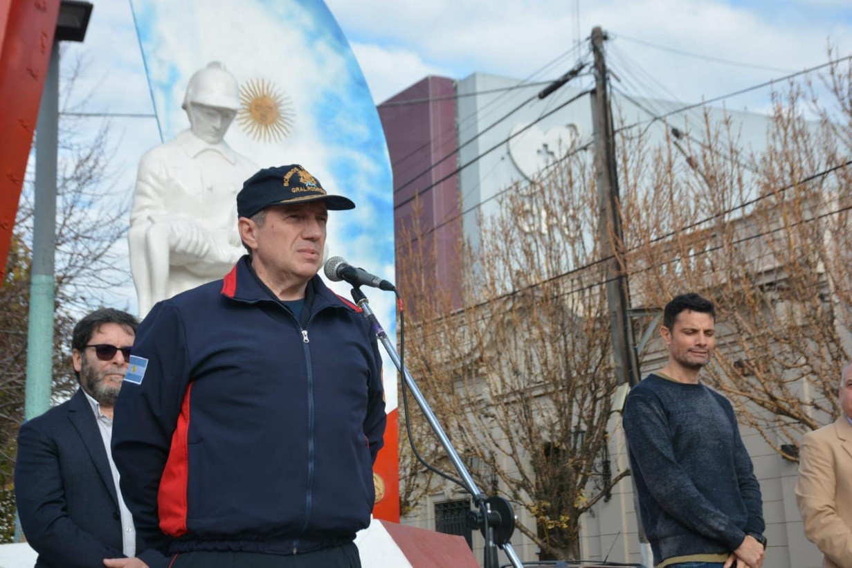 Este viernes 2 de junio, en la intersección de la Avenida España y la calle Avellaneda, se llevó adelante el acto oficial conmemorando el Día Nacional del Bombero Voluntario.