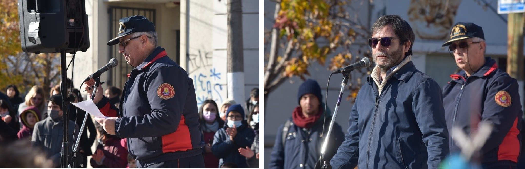 Al inicio tomo la palabra el jefe de los bomberos, Fernando Aguirre, quien agradeció al cuerpo de bomberos, y todos los integrantes del Concejo Directivo de la institución, y manifestó su alegría por poder realizar el acto con la presencia de público nuevamente.