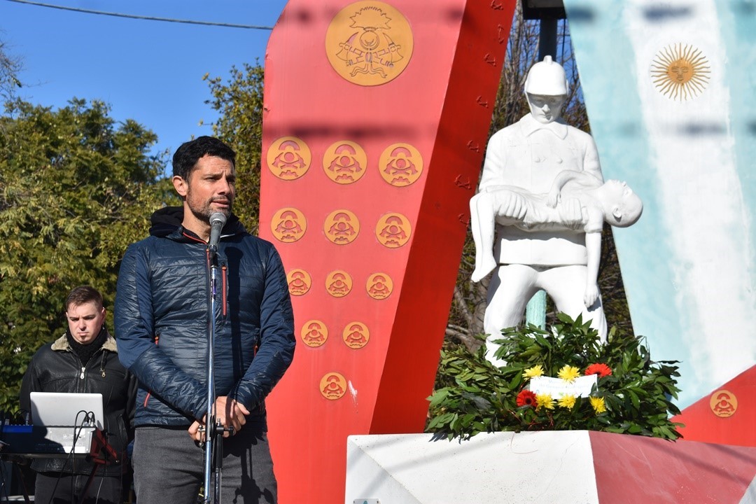 Luego tomo la palabra el intendente Mauro García quien agradeció el trabajo cotidiano que realiza el cuartel en servicio a nuestra comunidad. Luego el jefe comunal y autoridades del Concejo Deliberante brindaron ofrendas florales tradicionales en el monolito.