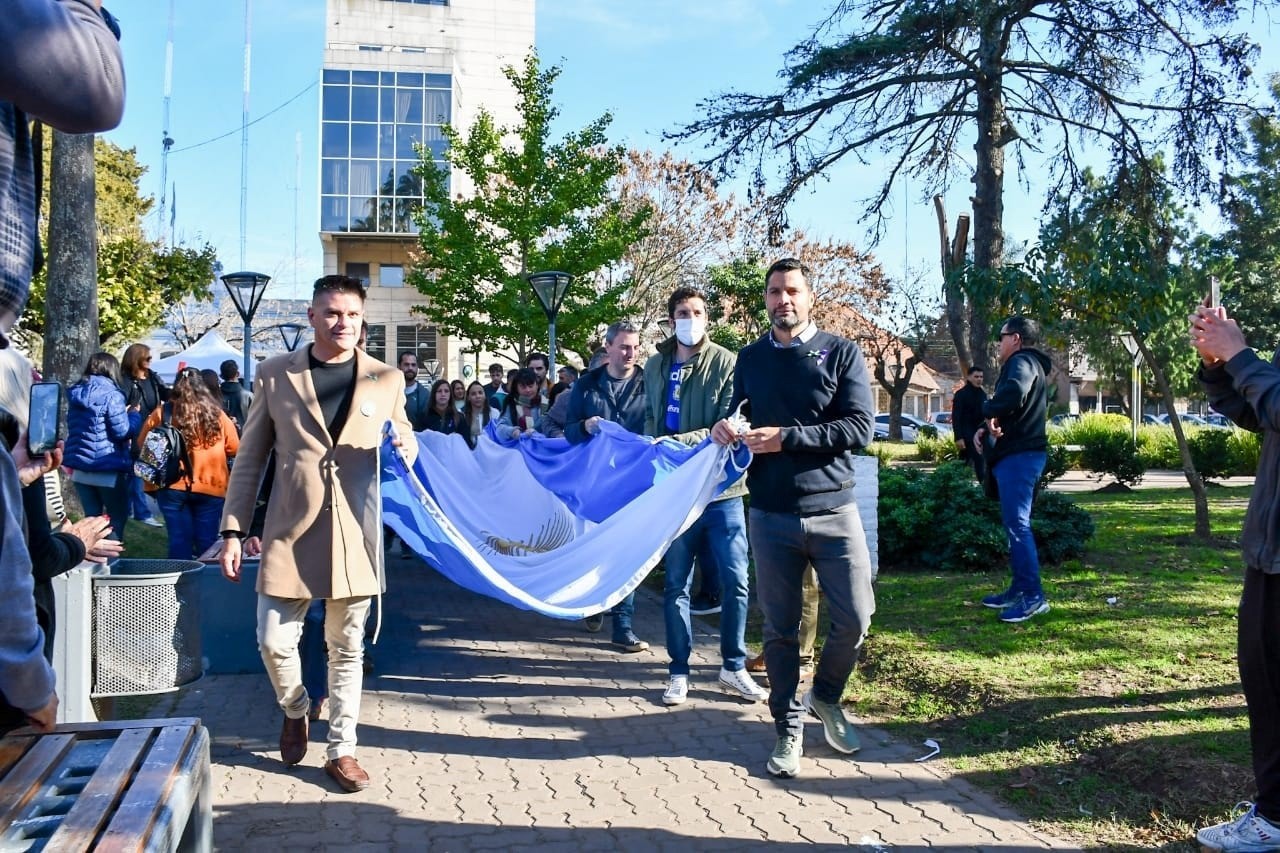 El primero de los actos oficiales tuvo lugar durante la mañana del jueves, donde se llevó adelante el tradicional izamiento de banderas en la Plaza Central. La ceremonia contó con la participación de las autoridades municipales, abanderados de escuelas y jardines, grupo de boy scouts y guías, docentes e inspectores, ex combatientes de Malvinas, vecinos, vecinas y representantes de las instituciones intermedias del distrito.