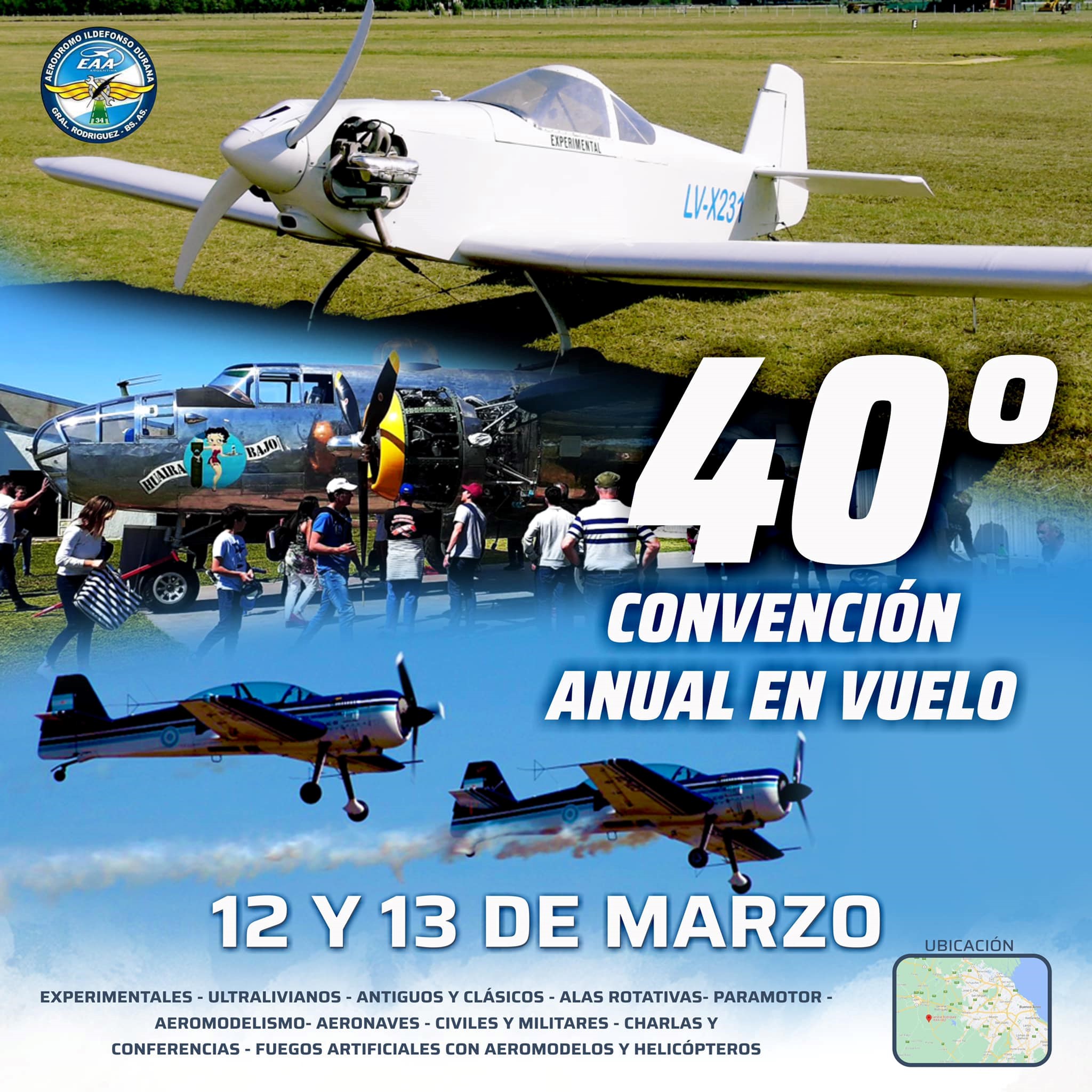 - Lugar: Aeródromo Ildefonso D. Durana (Ruta 6 y Arroyo La Choza, Km. 11)