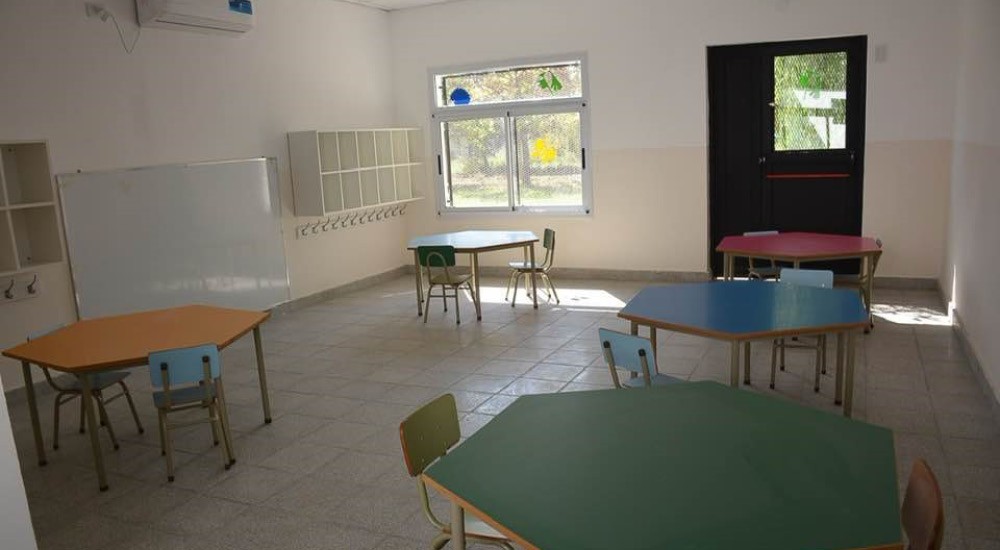 Se trata de dos aulas totalmente nuevas y equipadas, nuevos baños y el patio interno, que incorporan 120 vacantes que dan respuesta a la matrícula de los barrios Almirante Brown, Güemes y Altos del Oeste.
