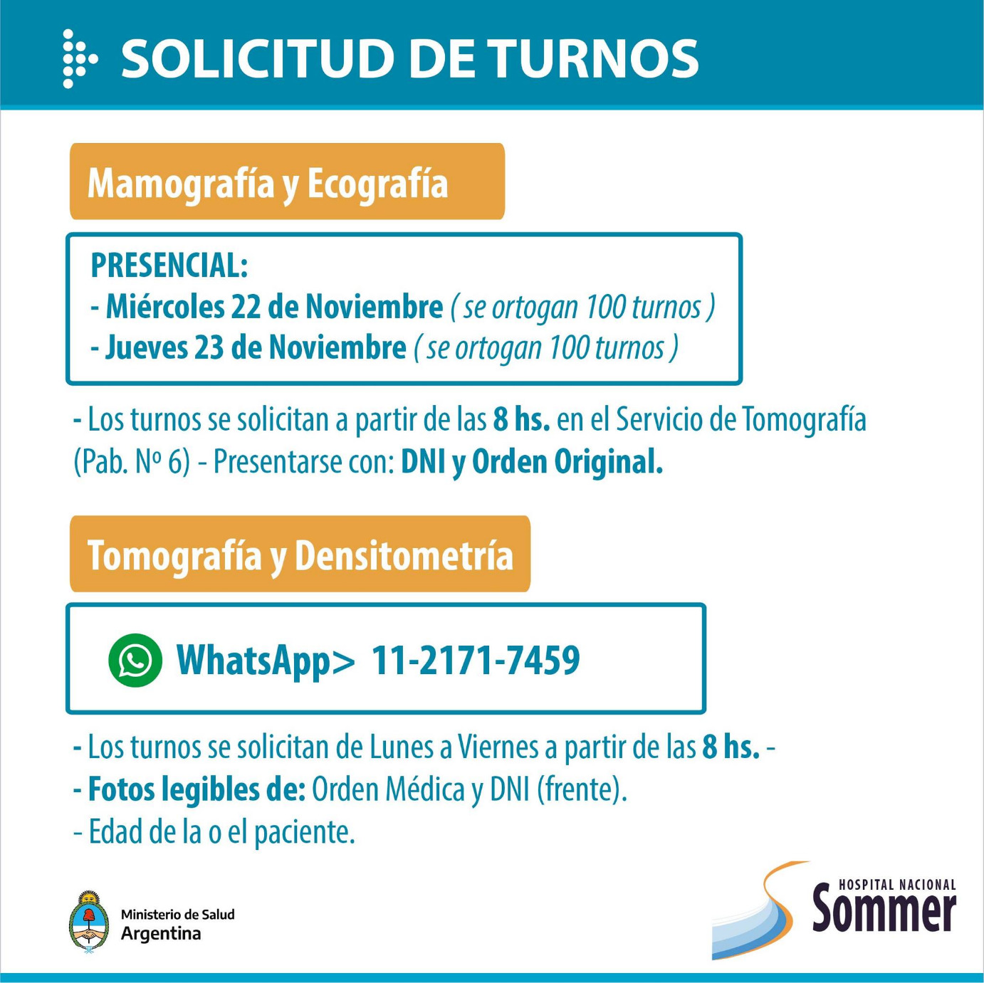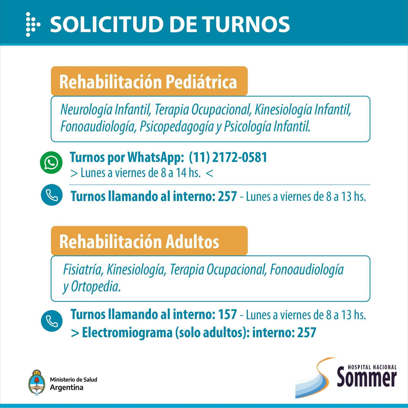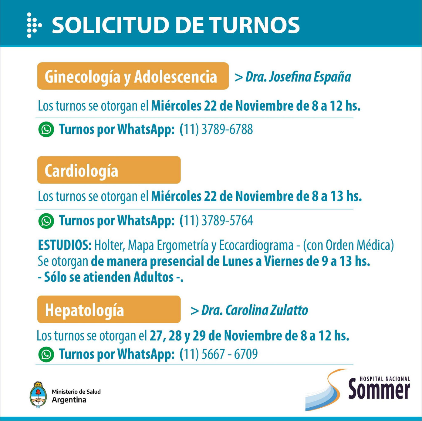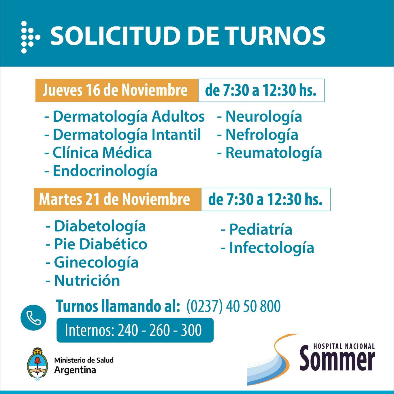 A través de sus redes sociales el Hospital Nacional Baldomero Sommer informó que se encuentra habilitada su agenda de turnos para las diversas especialidades que brinda: Ginecología, Diabetología, Nutrición, Neurología, Cardiología, Salud Mental, entre otros.