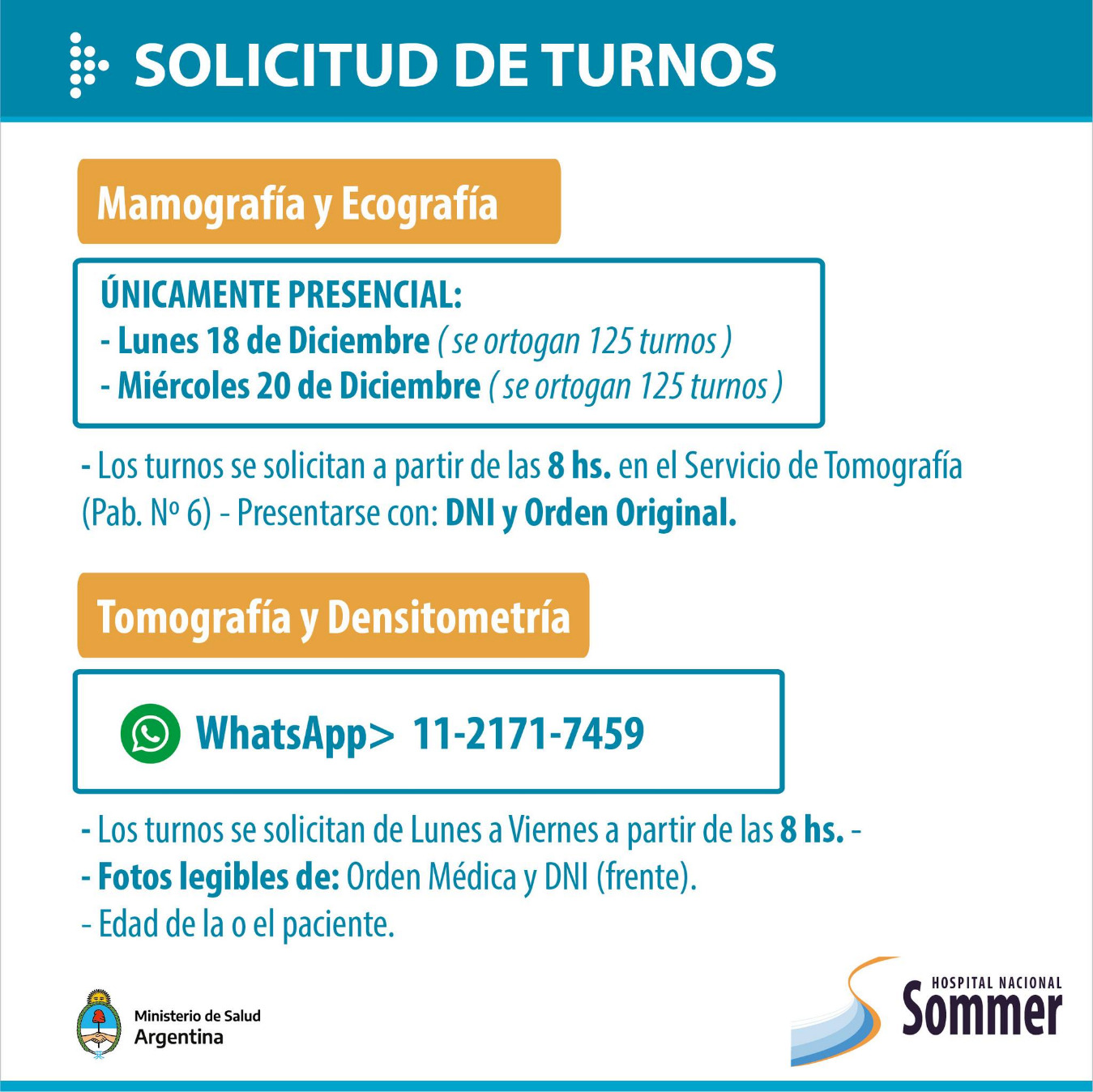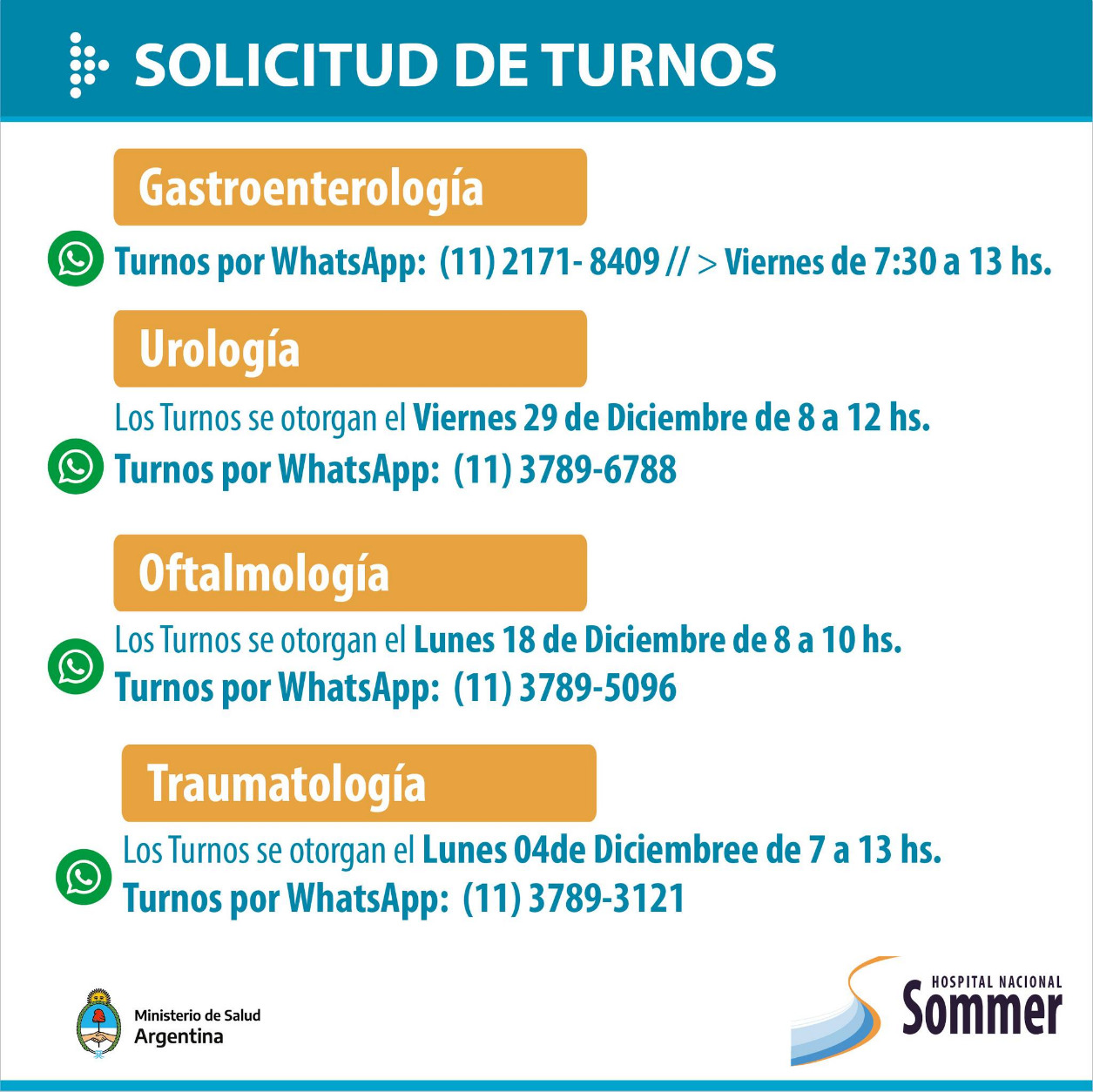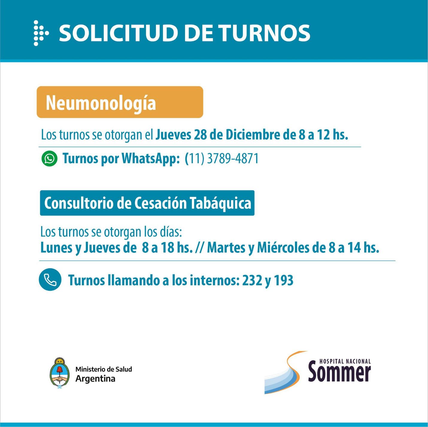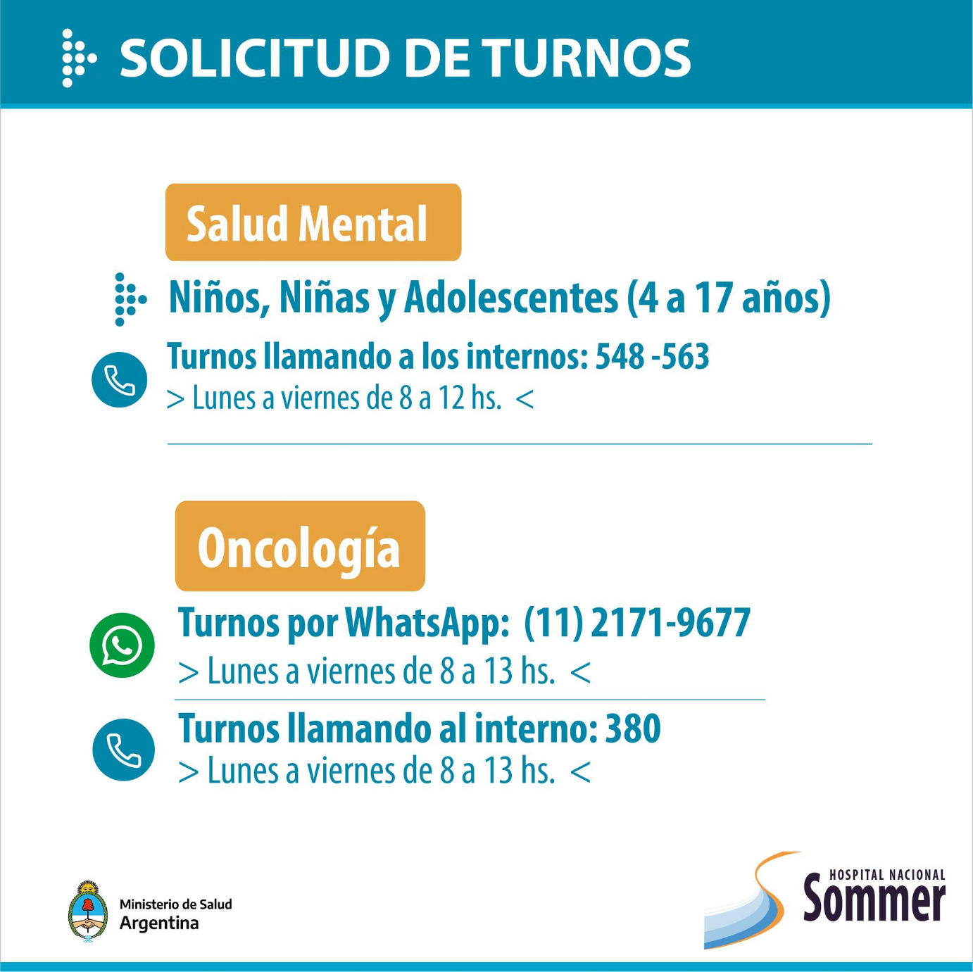 A través de sus redes sociales el Hospital Nacional Baldomero Sommer informó que se encuentra habilitada su agenda de turnos para las diversas especialidades que brinda: Ginecología, Diabetología, Nutrición, Neurología, Cardiología, Salud Mental, entre otros.