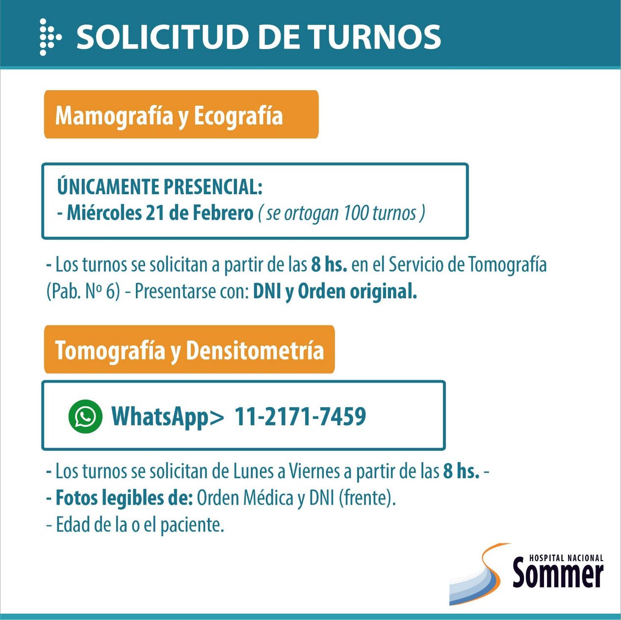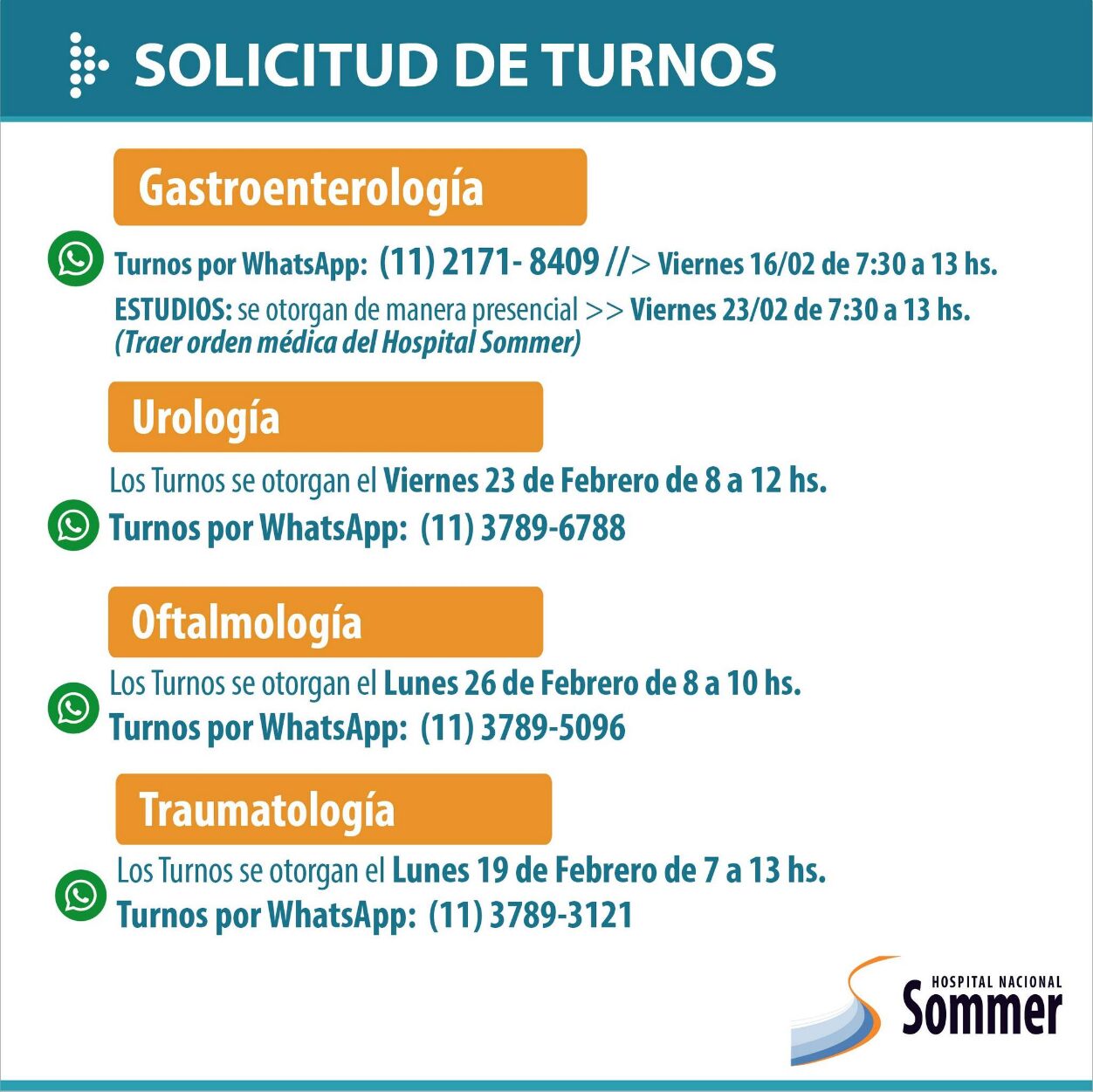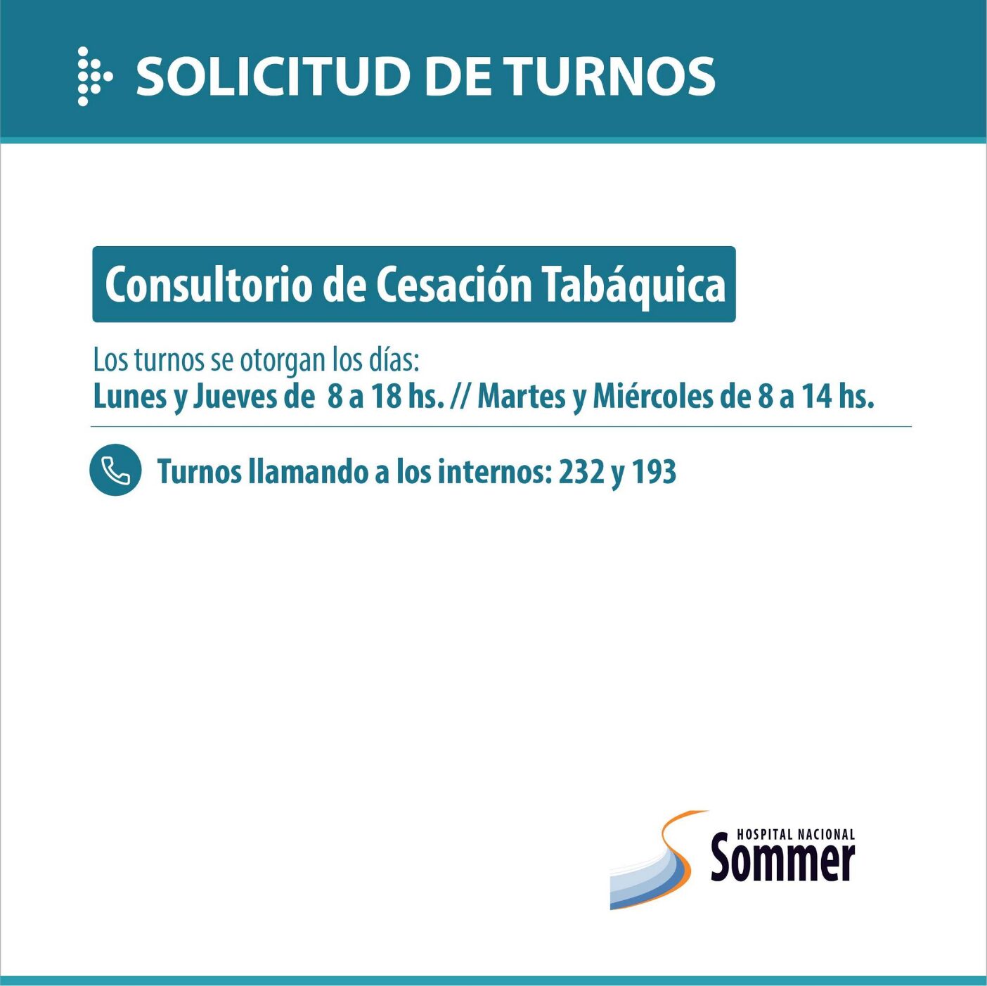 A través de sus redes sociales el Hospital Nacional Baldomero Sommer informó que se encuentra habilitada su agenda de turnos para las diversas especialidades que brinda: Ginecología, Diabetología, Nutrición, Neurología, Cardiología, Salud Mental, entre otros.