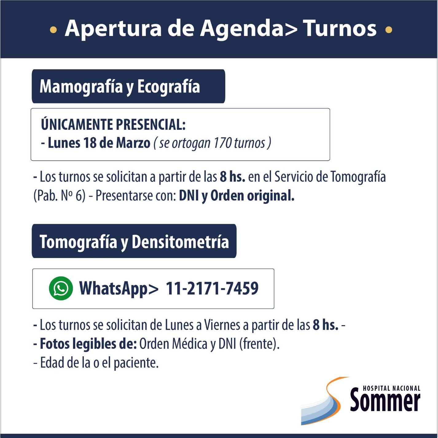 Apertura de agenda del Hospital Sommer