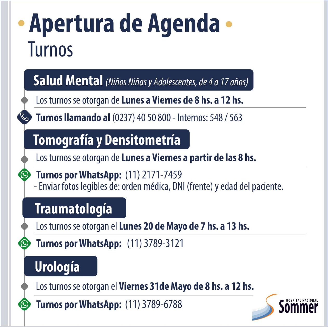 Apertura de agenda en el Hospital Baldomero Sommer