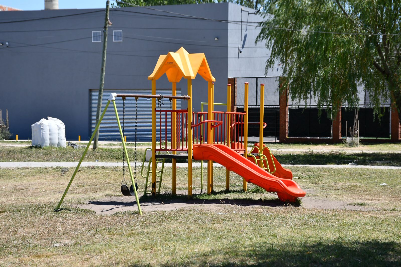 En paralelo, se avanza en la construcción de una plaza totalmente renovada, que contará con juegos recreativos, un playón multideportes y un anfiteatro, generando un espacio de encuentro, recreación y disfrute para toda la comunidad.