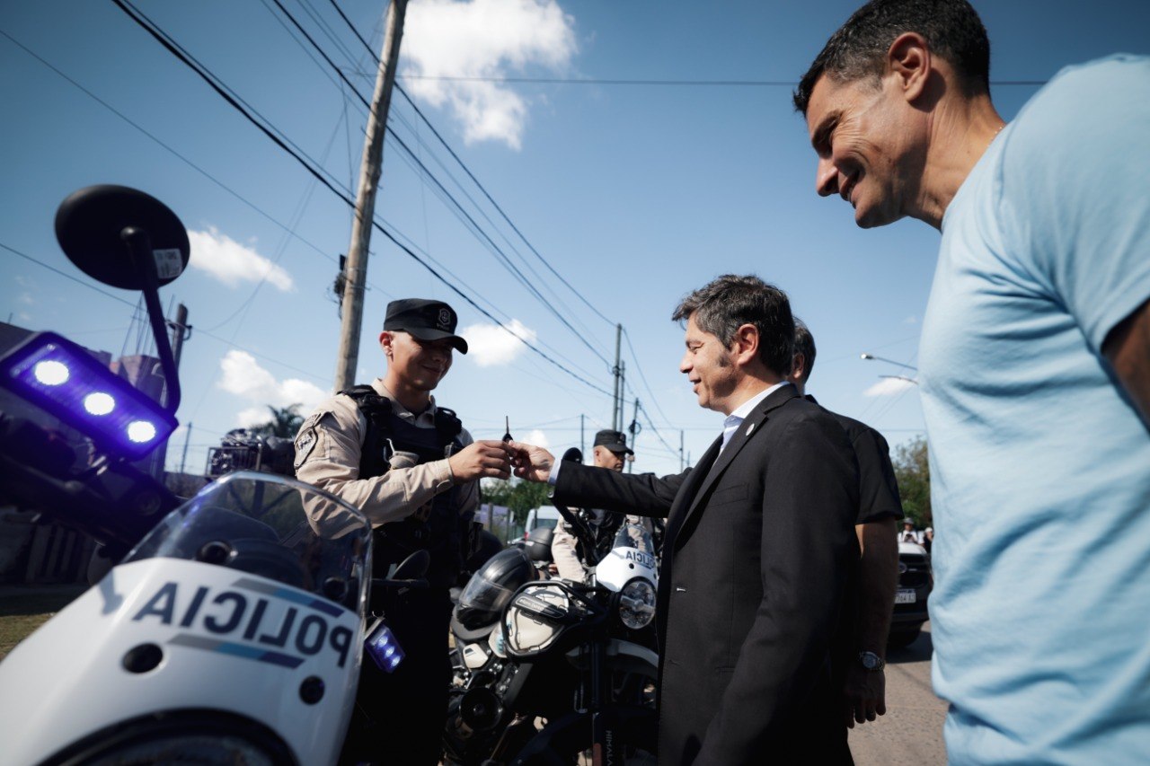 El gobernador de Axel Kicillof encabezó en General Rodríguez una jornada de gestión que incluyó la inauguración de la Escuela Primaria N.º 25 en el barrio Güemes y la incorporación de nuevos patrulleros y motos para fortalecer la seguridad en el distrito.