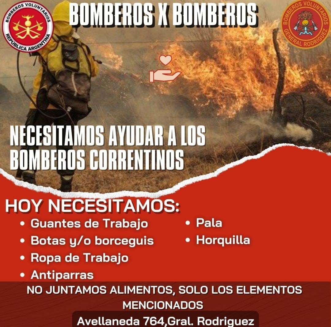 Desde las redes sociales los Bomberos Voluntarios de General Rodríguez anunciaron que lanzaron una campaña solidaria de recaudación de elementos para combate de incendios por la grave situación que se está viviendo en Corrientes.
