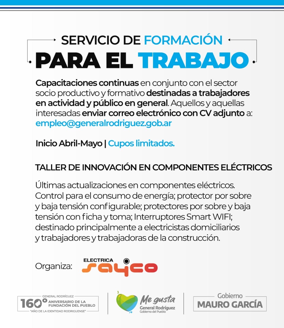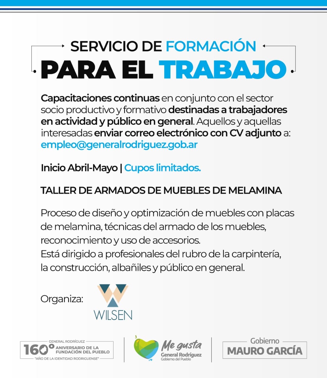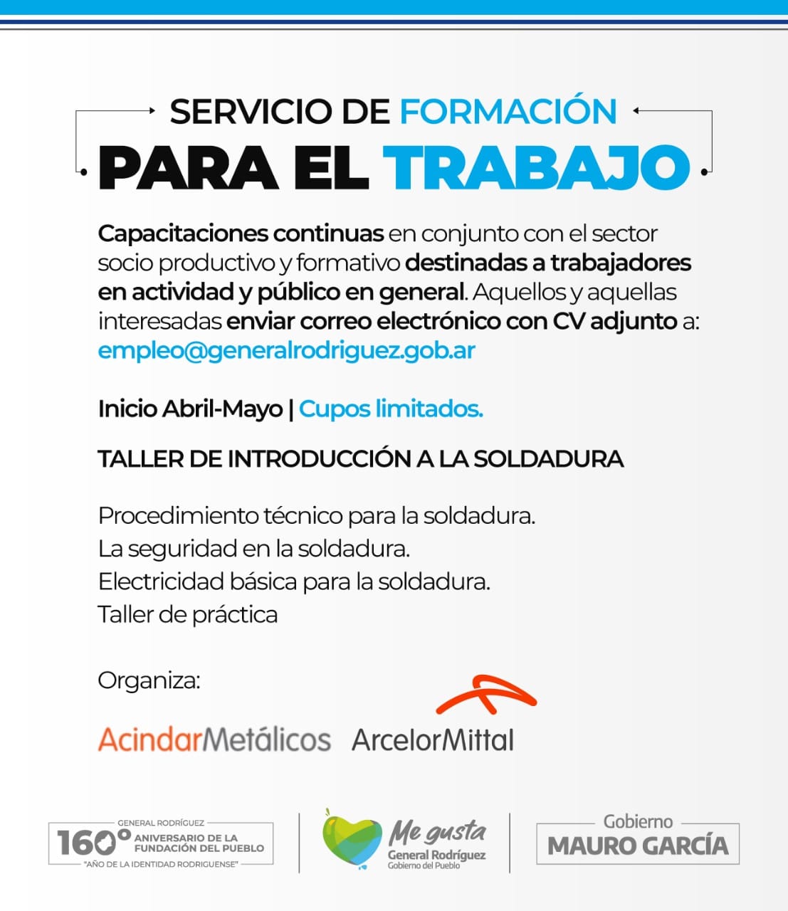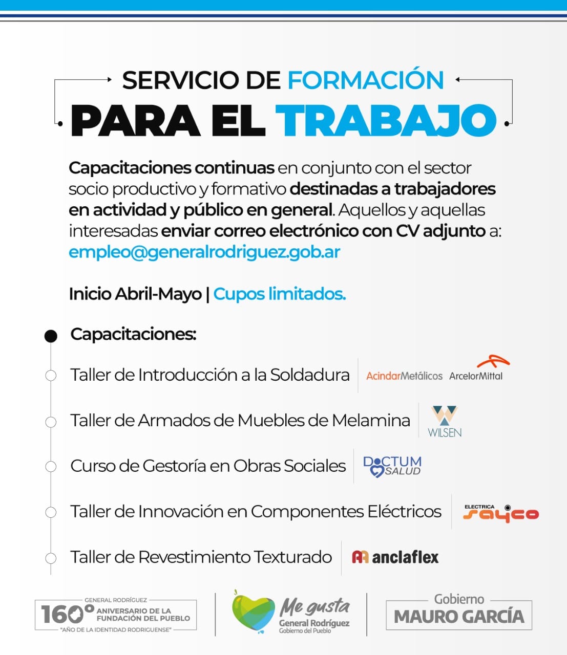 Desde la oficina de empleo del gobierno municipal dieron a conocer una serie de capacitaciones que el municipio realizara conjuntamente con empresas productivas radicadas en la localidad con el objetivo de formar mano de obra capacitada en diversos rubros.