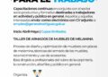 -Taller de armado de muebles de melamina: Proceso de diseño y optimización de muebles con placa de melamina, técnicas del armado de los muebles, reconocimiento y uso de accesorios. Está dirigido a profesionales del rubro de la carpintería, la construcción, albañiles y público en general.