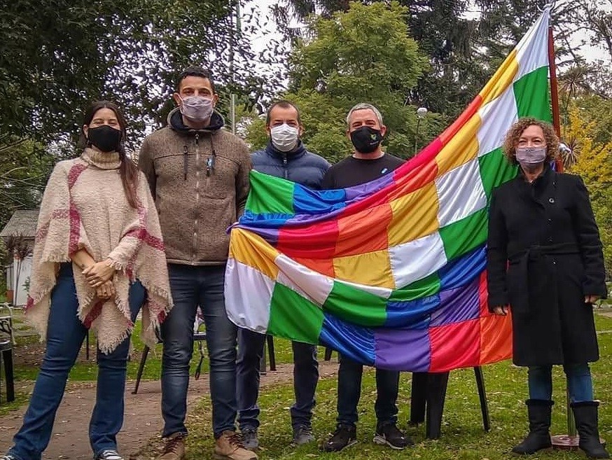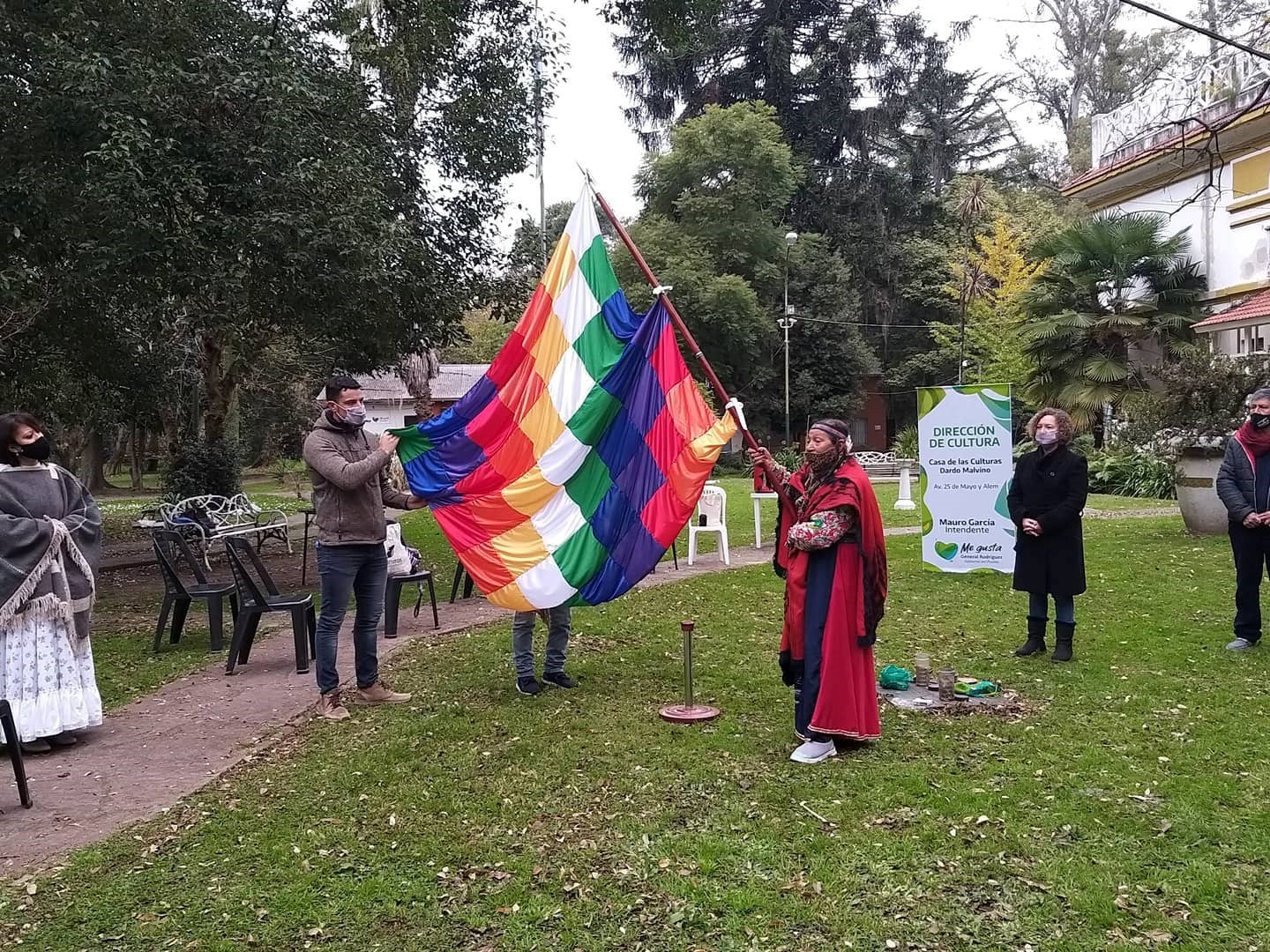 Además de la realización de la ofrenda, los representantes de las culturas ancestrales latinoamericanas hicieron entrega al Intendente Mauro García de una bandera Wiphala, símbolo de los pueblos originarios, para que sea ubicada junto a la Bandera Nacional Argentina en el Salón Garrahan de la Municipalidad.