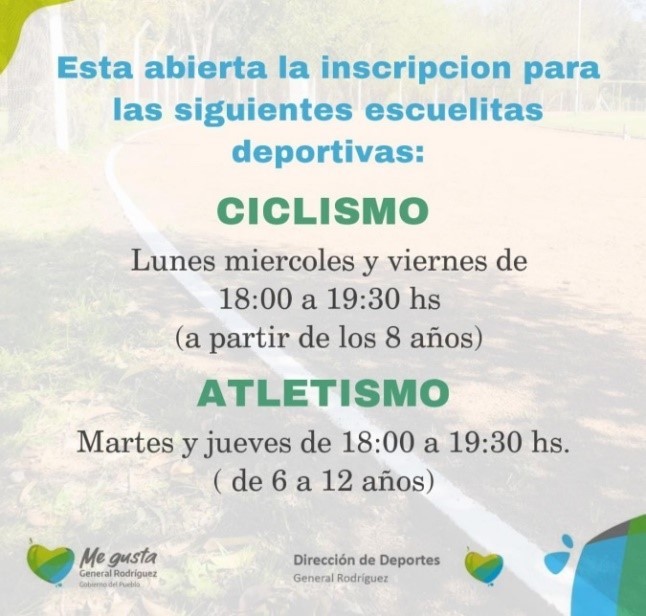 A partir del lunes 18 de enero comenzarán las inscripciones para quienes quieran formar parte de las escuelas municipales de diferentes disciplinas deportivas. Así lo anunció esta semana la Dirección de Deportes de General Rodríguez que encabeza Pablo Bustamante.