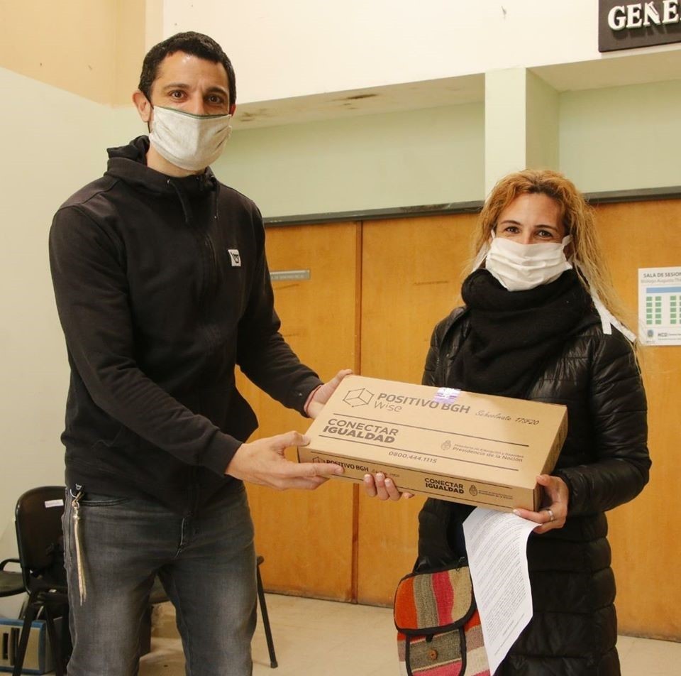 En esta primera fase, se entregaron 26 equipos, que fueron recibidos por padres y madres de estudiantes de la modalidad Sociales del Turno Mañana de la Escuela de Educación Secundaria N°2. En la entrega estuvieron presentes el Intendente Mauro García, la Directora de Educación Claudia Guerra y la Presidenta del Concejo Escolar Mariana Balbi.