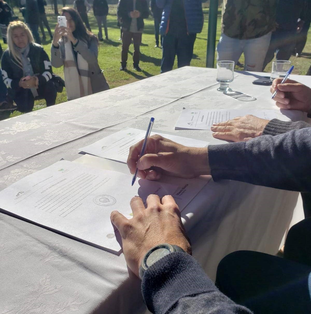 En el día de hoy se realizó la firma del acta de entrega de las tierras en donde se construirá la universidad de nuestra ciudad. Estuvieron presentes el Intendente municipal Mauro García, el desarrollador del parque, Carlos de Narváez, el Subsecretario de Producción y Desarrollo, Juan Tedesco, la Subsecretaria de Gobierno, Claudia Guerra, Juan Fera, presidente de la Unión Industrial de General Rodríguez en representación del Polo Industrial, representantes de PyMES y del ámbito educativo.