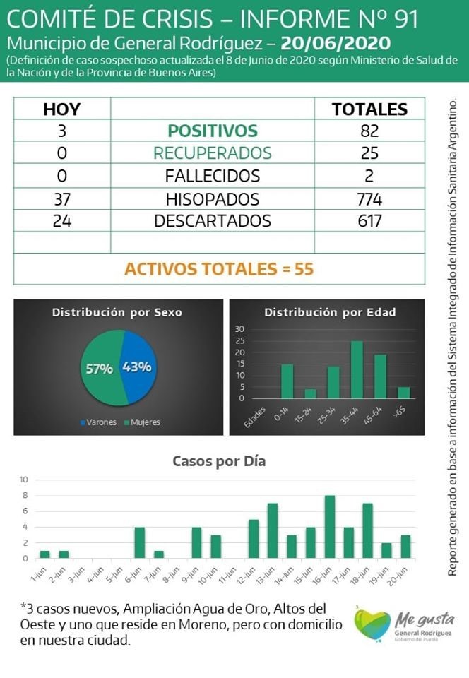 Según lo informado por el Comité de Crisis de General Rodríguez hoy se han confirmado 3 casos positivos más en el distrito.