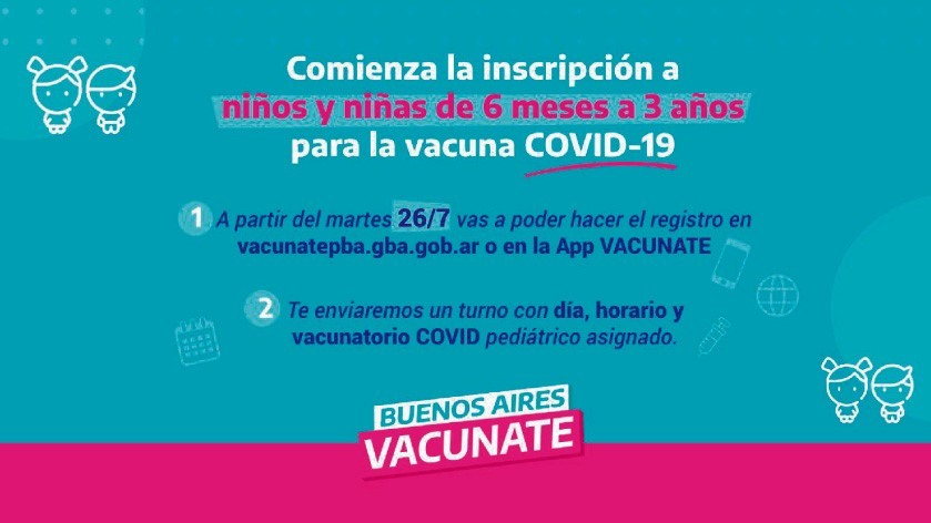 El 26 de julio se abrió la inscripción para que los niños y niñas de la provincia de Buenos Aires, que tengan entre 6 meses y 3 años, inclusive, puedan recibir la vacuna contra el Covid.