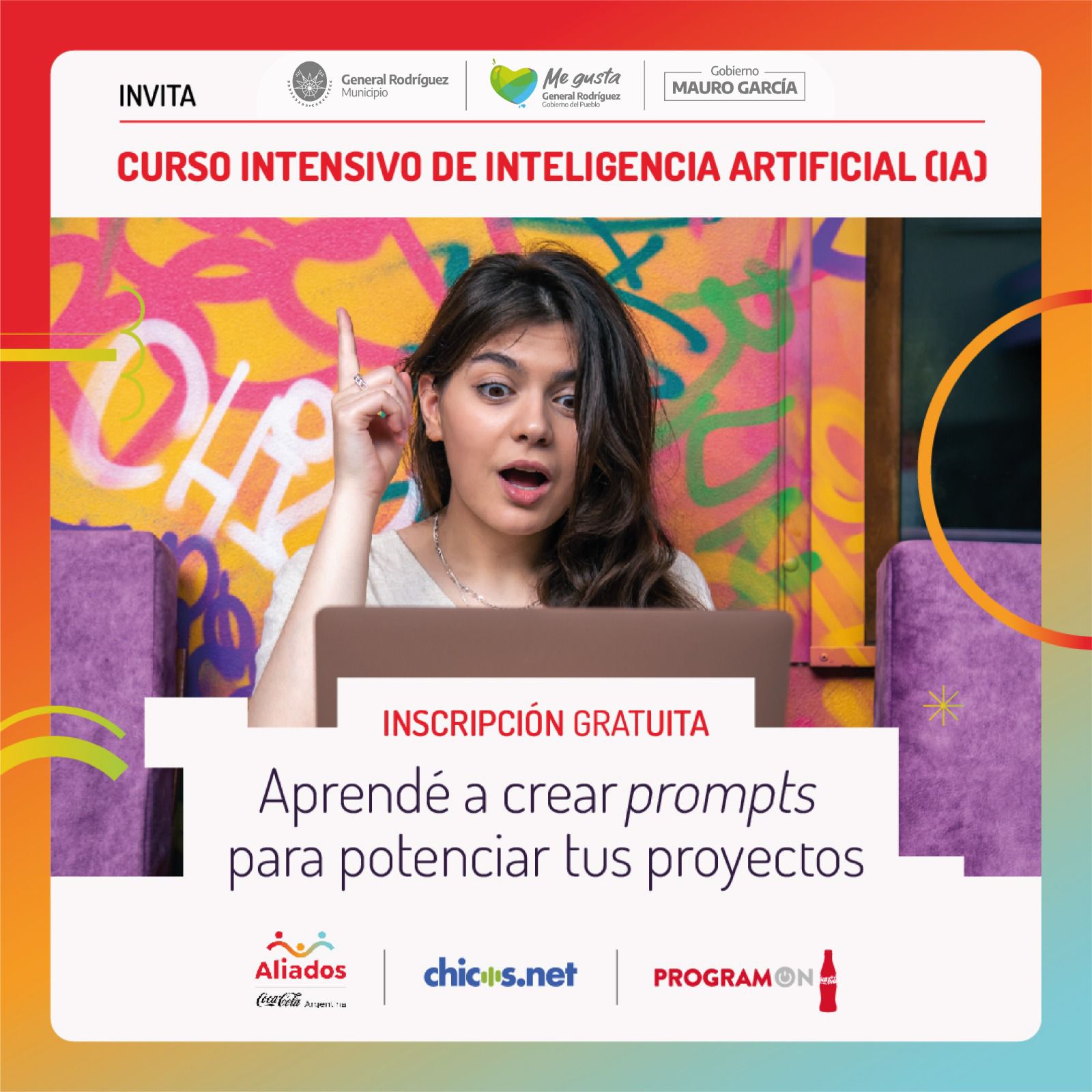 El curso gratuito, que se brindara en dos ediciones, está destinado a jóvenes entre los 17 y 21 años y tiene como objetivo aprender a crear “Prompts” para “potenciar tus proyectos” y ganar calidad a la hora de la utilización de inteligencias artificiales.