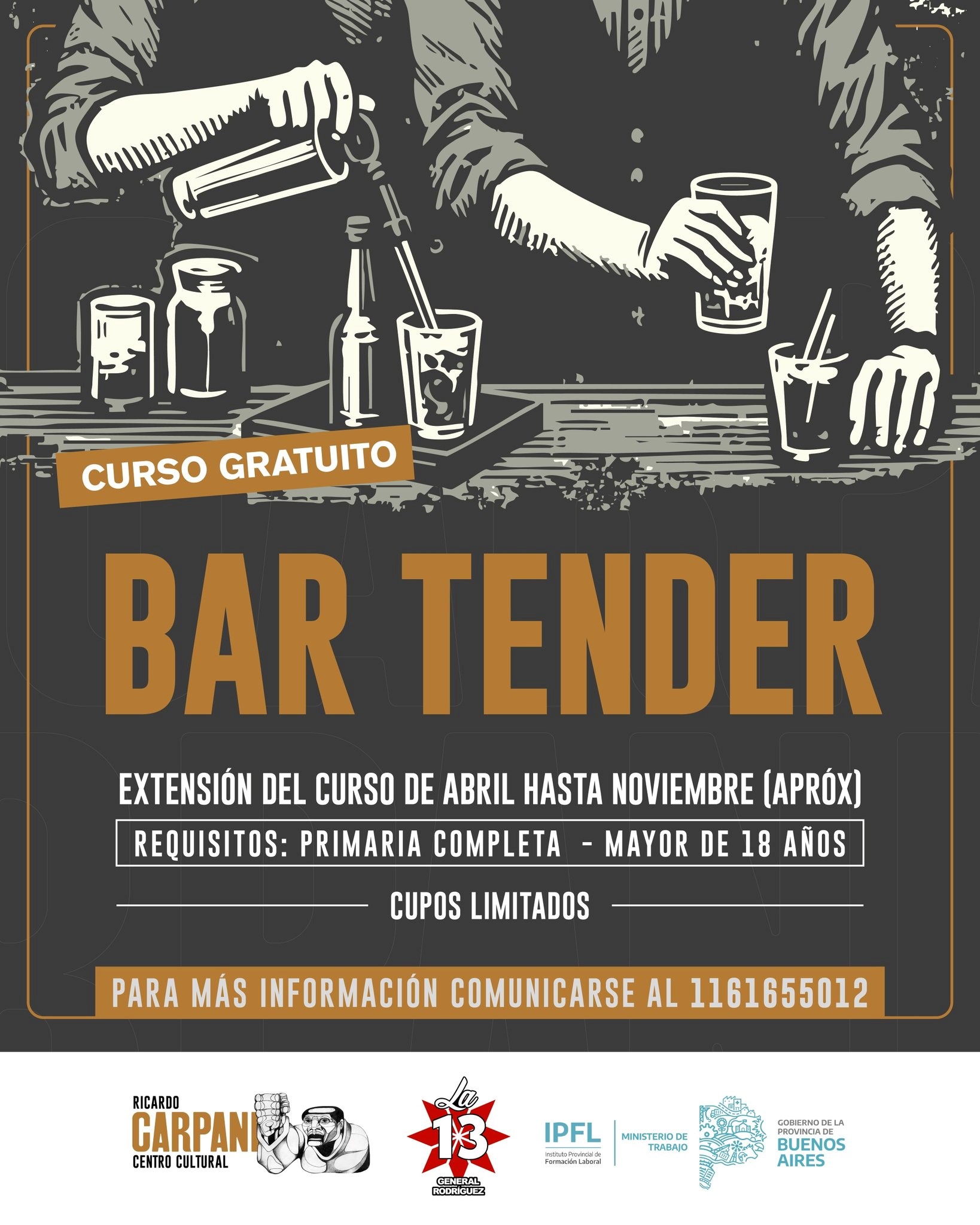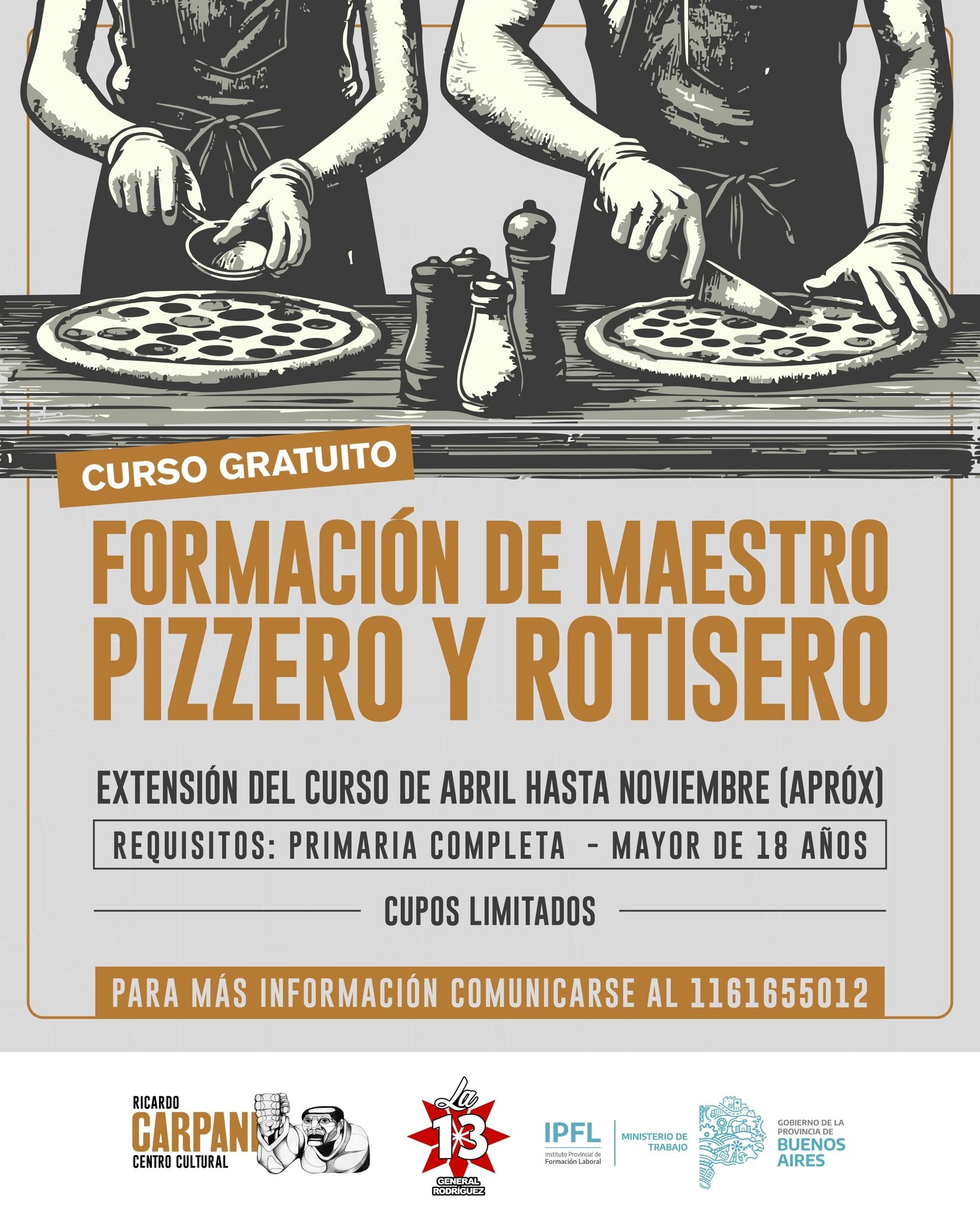 En esta ocasión de se trata, por un lado, de un curso de formación de Maestro Pizzero y Rotisero y, por el otro, de un curso de Formación de Bar Tender. Ambos gratuitos, con certificación oficial ya que se brindan en articulación con el gobierno de la Provincia de Buenos Aires. Ambos comienzan el próximo martes 15 de abril y para inscribirse pueden comunicarse al número 1161655012.