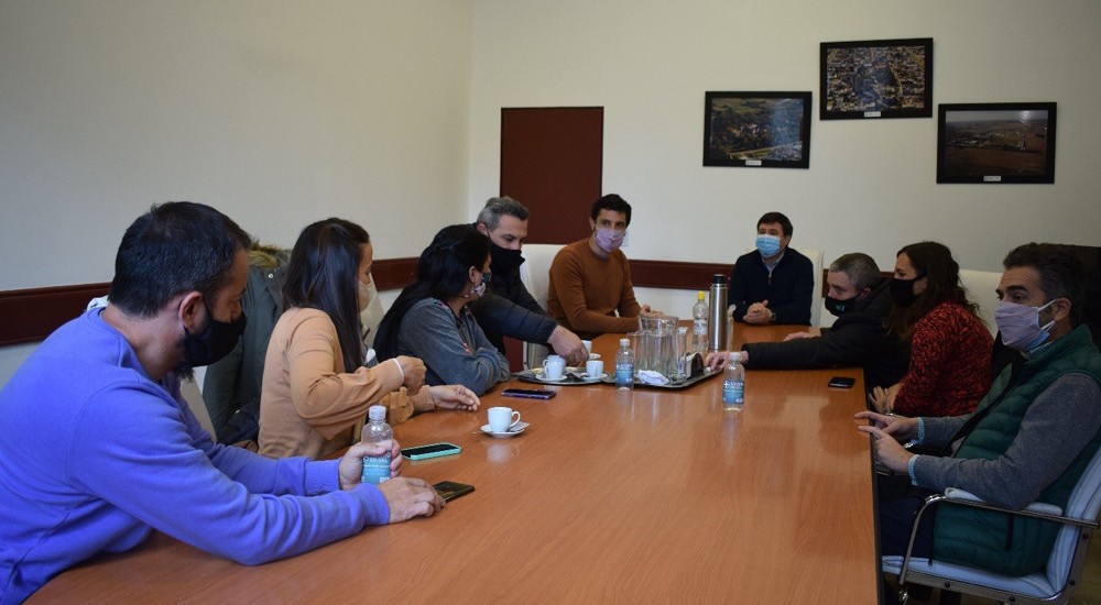 Media hora más tarde, junto a la Secretaria de Desarrollo Comunitario, Mariana Galván, el Secretario de Obras, Servicios Públicos y Viviendas, Mauricio Ríos, el responsable de la Oficina de Empleo y Formación, Matías Magnin, y el concejal del Frente de Todo, Cartu Torres, entreo otros funcionarios y funcionarias, se llevó adelante la celebración de otra reunión dentro del Salón Garrahan.