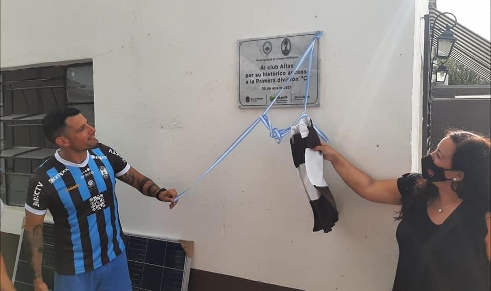 VISITA DEL INTENDENTE: Mauro García estuvo presente en la previa del partido donde tuvo un dialogo extendido con el entrenador Néstor Retamar y el presidente del club Maximiliano Ambrosio. Por otra parte, y con la camiseta de Atlas puesta, el intendente participó del destape de una plaqueta en conmemoración al histórico ascenso de Atlas a la “Primera C”.
