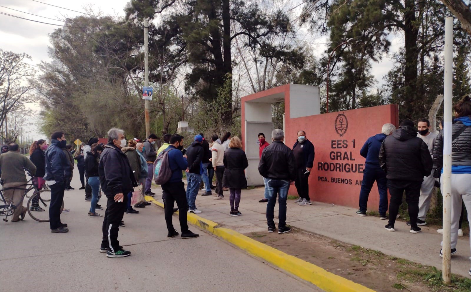 Sin embargo, como era de esperarse, con el correr de las horas comenzaron a formarse largas filas para poder emitir el voto. Algo entendible debido al estricto protocolo sanitario que se aplica con el objetivo de que votar sea seguro para todos y todas.