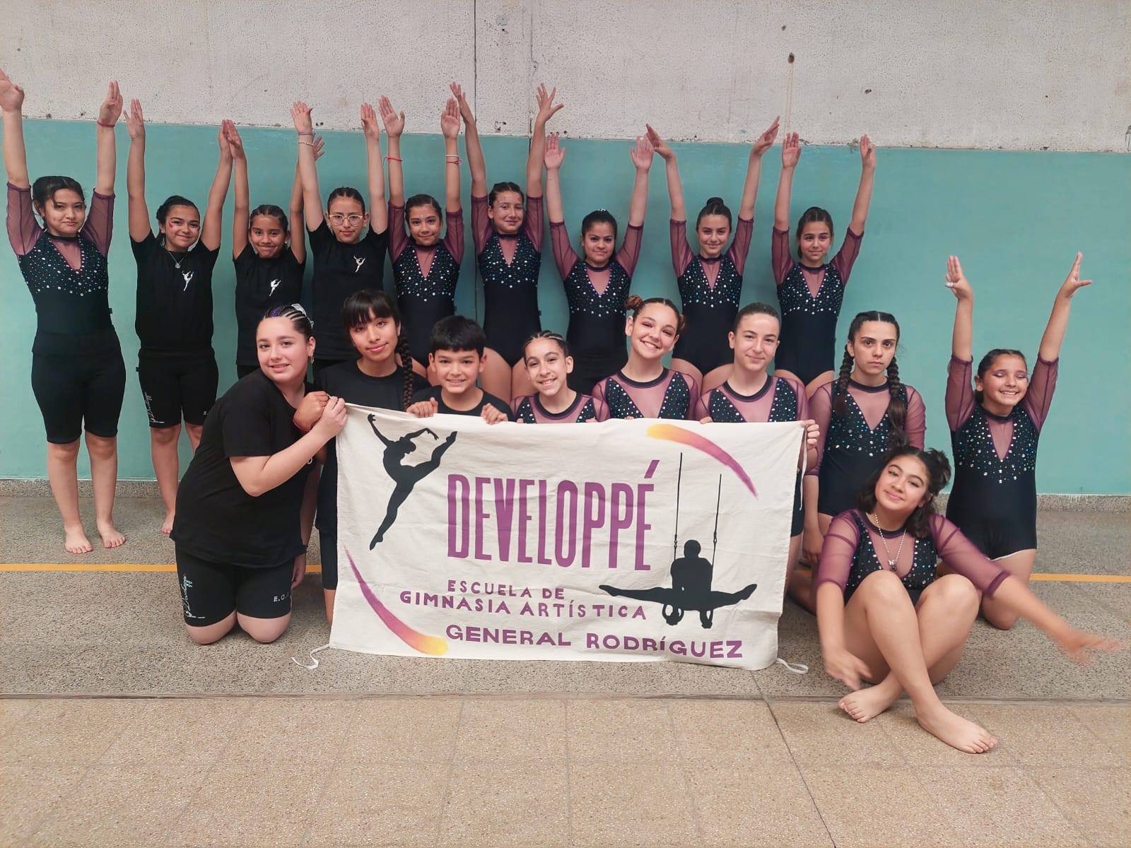 “Developpé”, movimiento o paso característico de la gimnasia artística, es el nombre que lleva esta escuela, ubicada en Antártida Argentina y Pasaje Colombo, General Rodríguez, donde más de 150 niñas y niños la integran. Belén Fusaro y Antonella Filippini son profesoras de educación física, entrenadoras de gimnasia artística, formadas en la escuela del reconocido atleta Federico Molinari, y fundadoras de esta escuela. La misma abrió sus puertas en mayo del año pasado, luego de que la pandemia retrasara su apertura, y hoy en día se ubican en un amplio espacio que les permite albergar a muchas más alumnas.