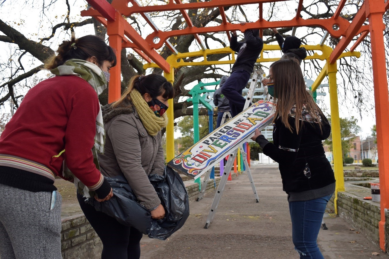 Diversas agrupaciones locales, entre ellas la Corriente Peronista 13 de abril, Descamisados, Kolina, Atilra y Nuevo Encuentro, integrantes de la Mesa Política Cristina Conducción, participaron de dos jornadas en las que se pintó con los colores característico del colectivo LGBTIQ+ la glorieta principal de la Plaza Sur de General Rodríguez.