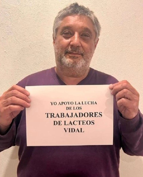 A partir del miércoles 19 de octubre comenzaron a circular en las redes sociales las imágenes de varios dirigentes y militantes de espacios políticos, sindicales y sociales con carteles en los cuales manifiestan su apoyo a la lucha que los trabajadores y trabajadoras de Lácteos Vidal sostienen mediante una huelga que lleva casi tres meses.