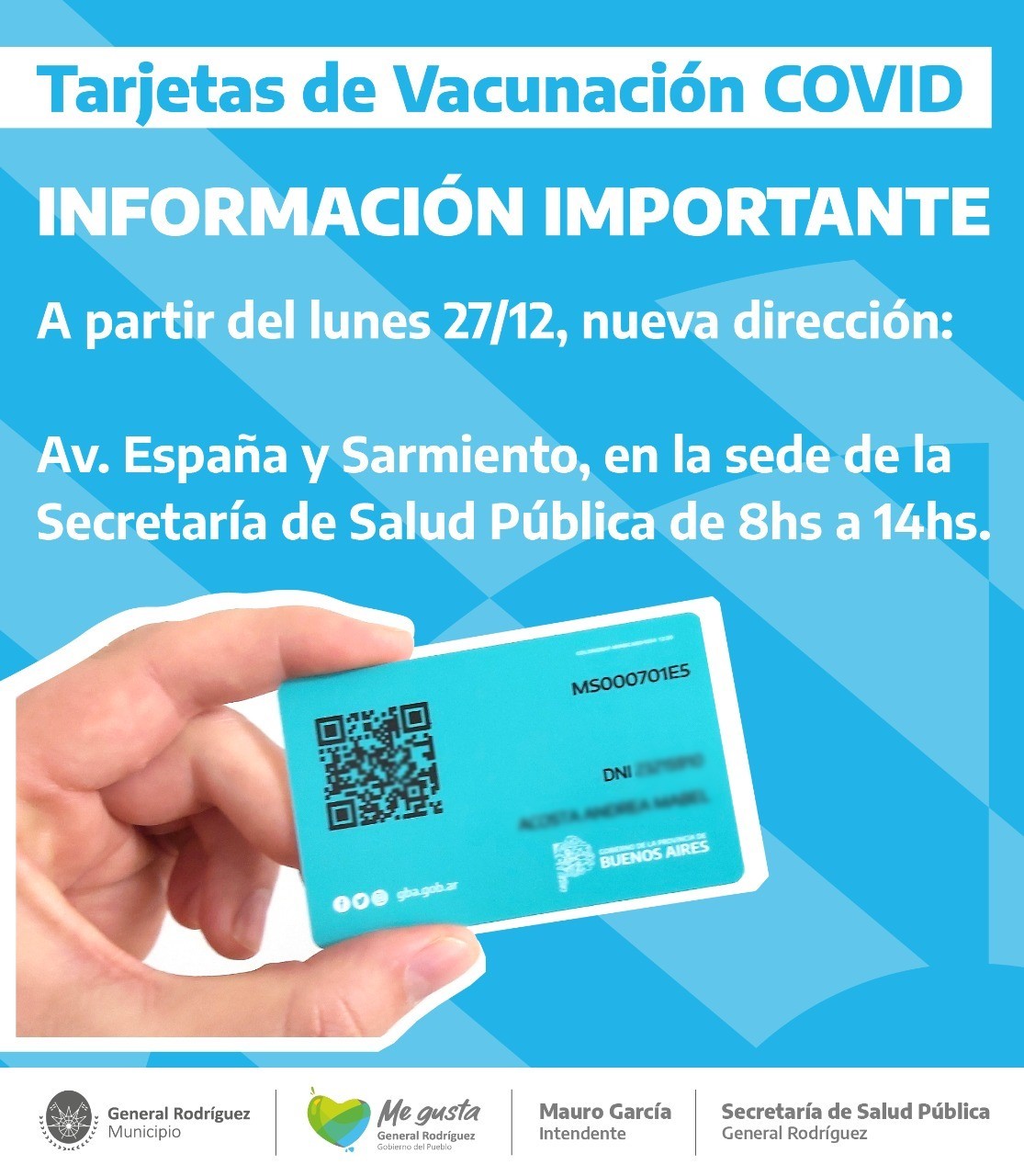 El gobierno municipal informo que a partir de esta semana la entrega de credenciales Covid-19 se realizara en las oficinas de la Secretaria de Salud Pública, ubicada en la esquina de las calles Sarmiento y Avenida España, entre las 8 y las 14 horas.