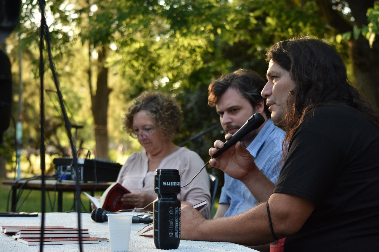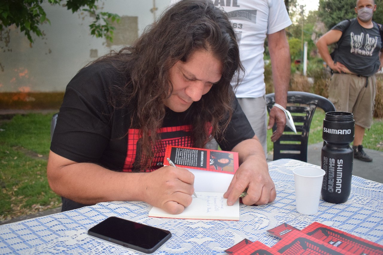 Lo hizo acompañado por Graciela Ocampo, Directora de Cultura del Gobierno Municipal, y por Hernán D’Ambrosio, escritor local y quien prologó el libro, y un nutrido grupo de asistentes, entre quienes estaban su compañera de vida, el intendente Mauro García, y compañeros de Atilra.