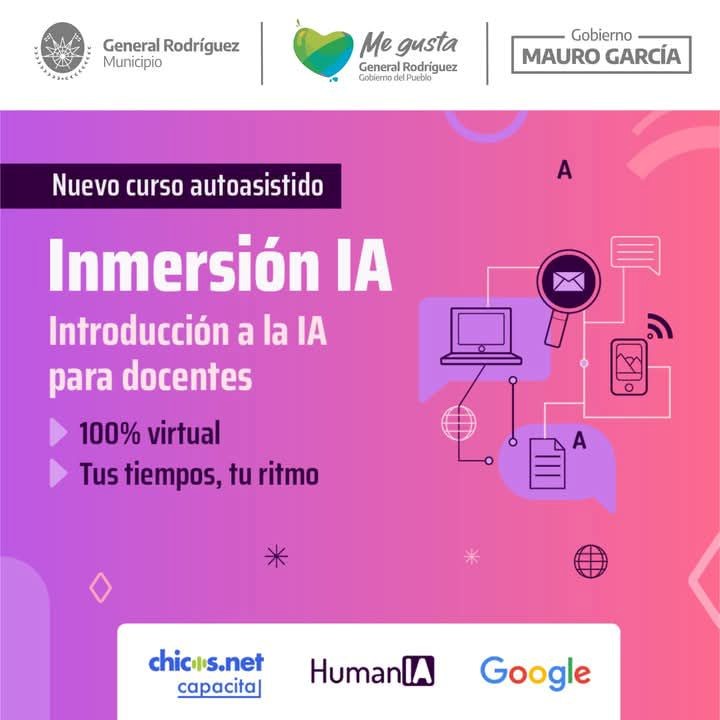 Se trata de un curso de modalidad virtual de 8 semanas de inscripción gratuita, iniciativa del portal web Chicos.net con el apoyo solidario y desinteresado del consorcio tecnológico Google, gestionado para que llegue a General Rodríguez por el gobierno encabezado por el Intendente Mauro García.