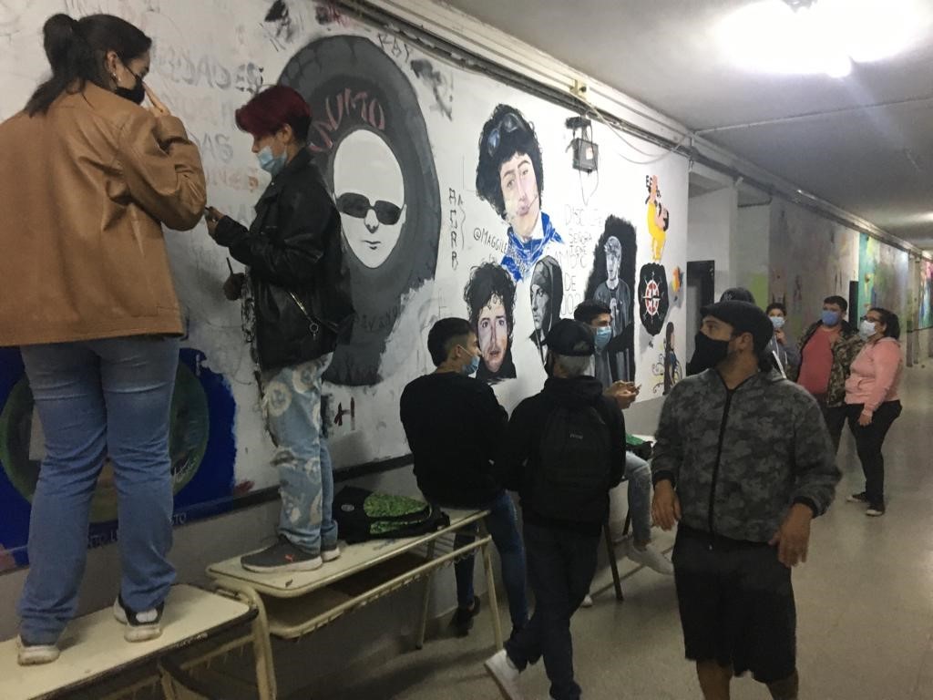 Guillermo Verón, Carlos Autieri y Federico Bonavita vuelven a la carga con un nuevo mural artístico impulsado desde el colectivo artístico Mosca en Pinta, esta vez con el trabajo de las y los estudiantes de la Escuela Secundaria N°1 “Combatientes de Malvinas”.
