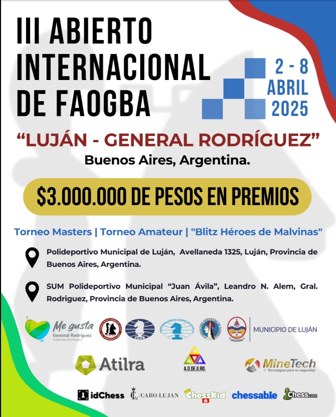 Del 2 al 8 de abril, llega a nuestra ciudad el III Abierto Internacional de FAOGBA para reafirmarse en el calendario como uno de los torneos más importantes del país. Esta edición es recibida por los Municipios de Luján y General Rodríguez, reconocidos por sus ofertas turísticas y desde hace un tiempo, como referencia deportiva de la provincia de Buenos Aires. Dicho torneo entregará 3.000.000 de pesos en premios y tiene como principal sponsor a la Seccional ATILRA Gral. Rodríguez (Asociación de Trabajadores de la Industria Lechera de la República Argentina).