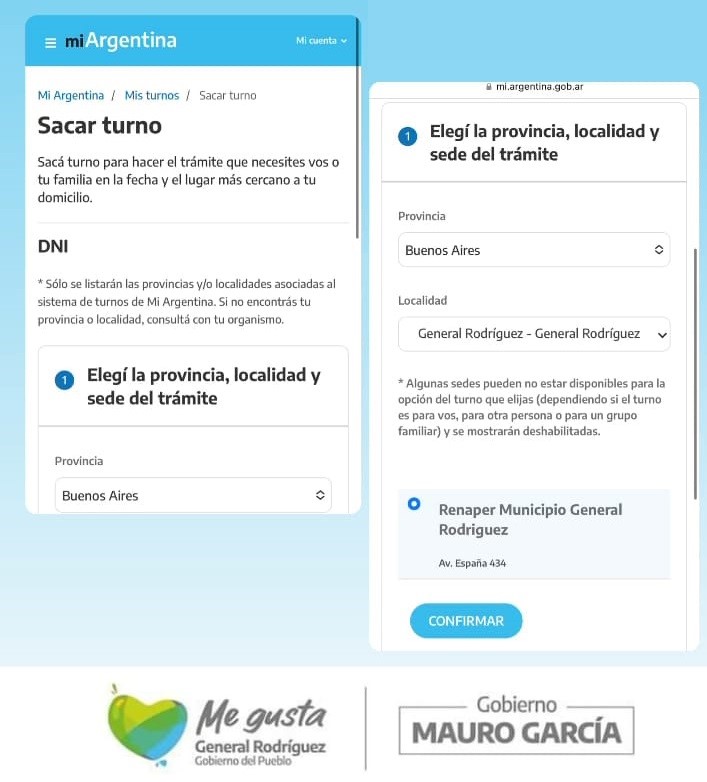 Ahora la sede ya cuenta con su turnera habilitada para poder solicitar de forma virtual el trámite correspondiente. A través de la app Mi Argentina e ingresando al siguiente enlace https://www.argentina.gob.ar/interior/renaper/turnos-online deberás seleccionar tu provincia, localidad y sede del trámite y solicitar tu turno para pasaporte o DNI.